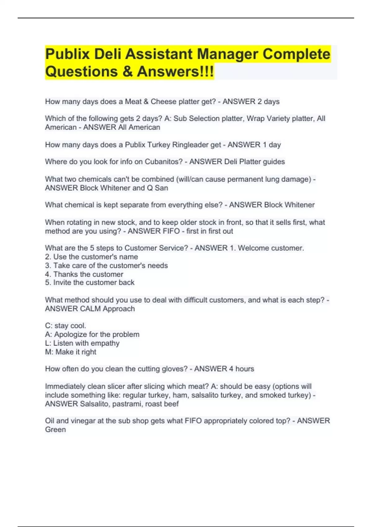 Publix Deli Assistant Manager Complete Questions & Answers!!!