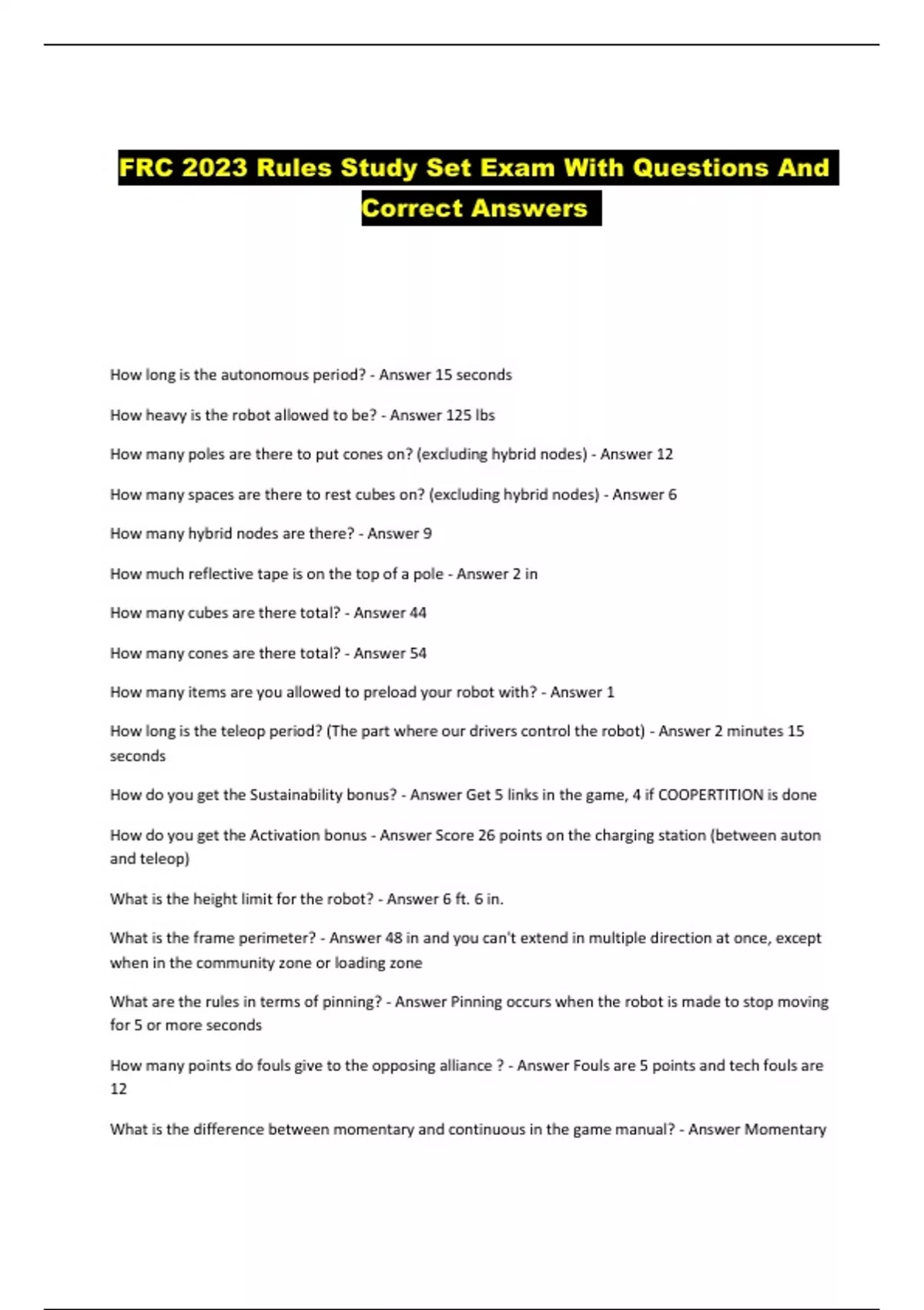 FRC 2023 Rules Study Set Exam With Questions And Correct Answers ...