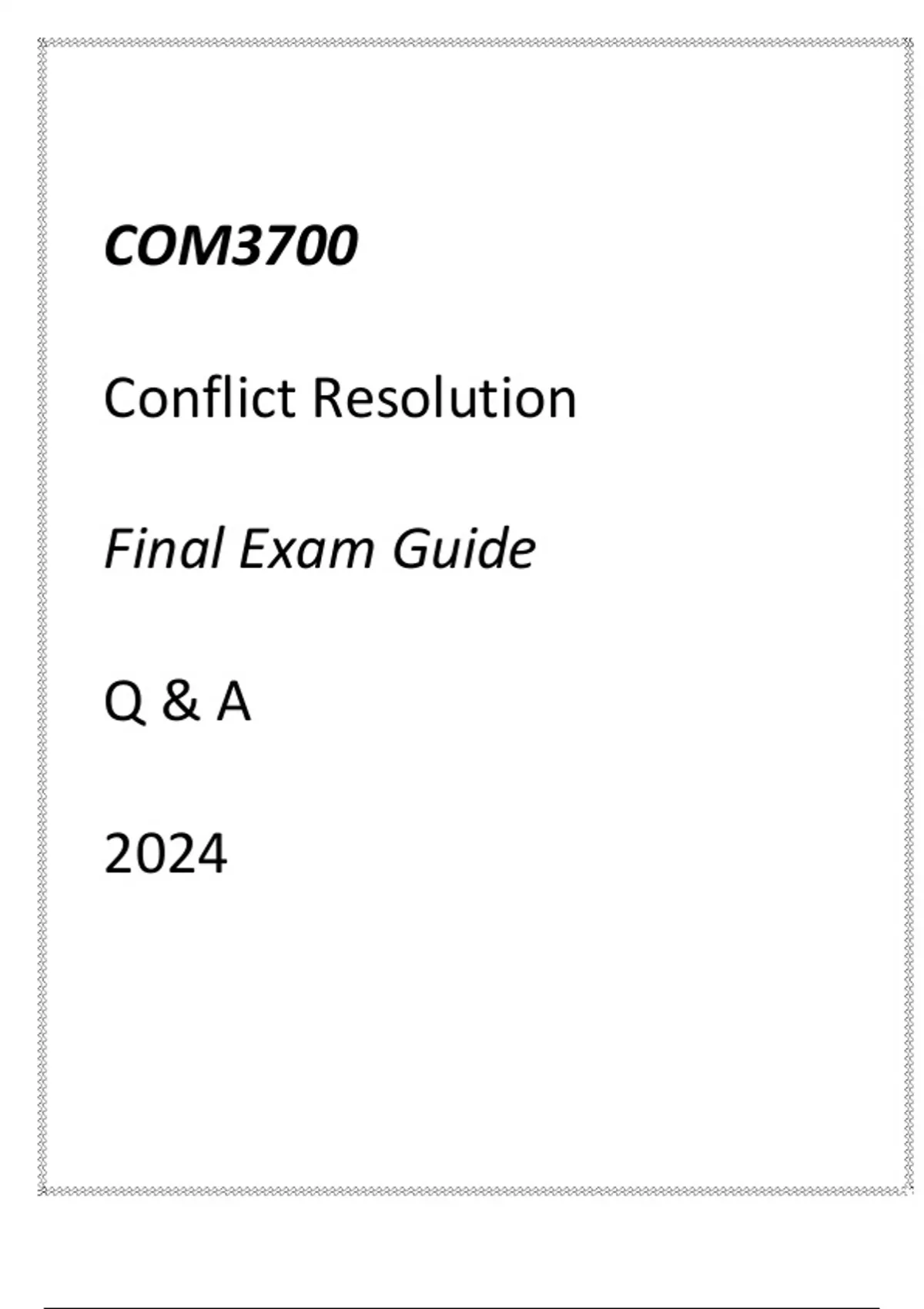 COM3700 Conflict Resolution Final Exam Guide Q & A 2024.COM3700 Conflict Resolution Final Exam Guide Q & A 2024.COM3700 Conflict Resolution Final Exam Guide Q & A 2024.