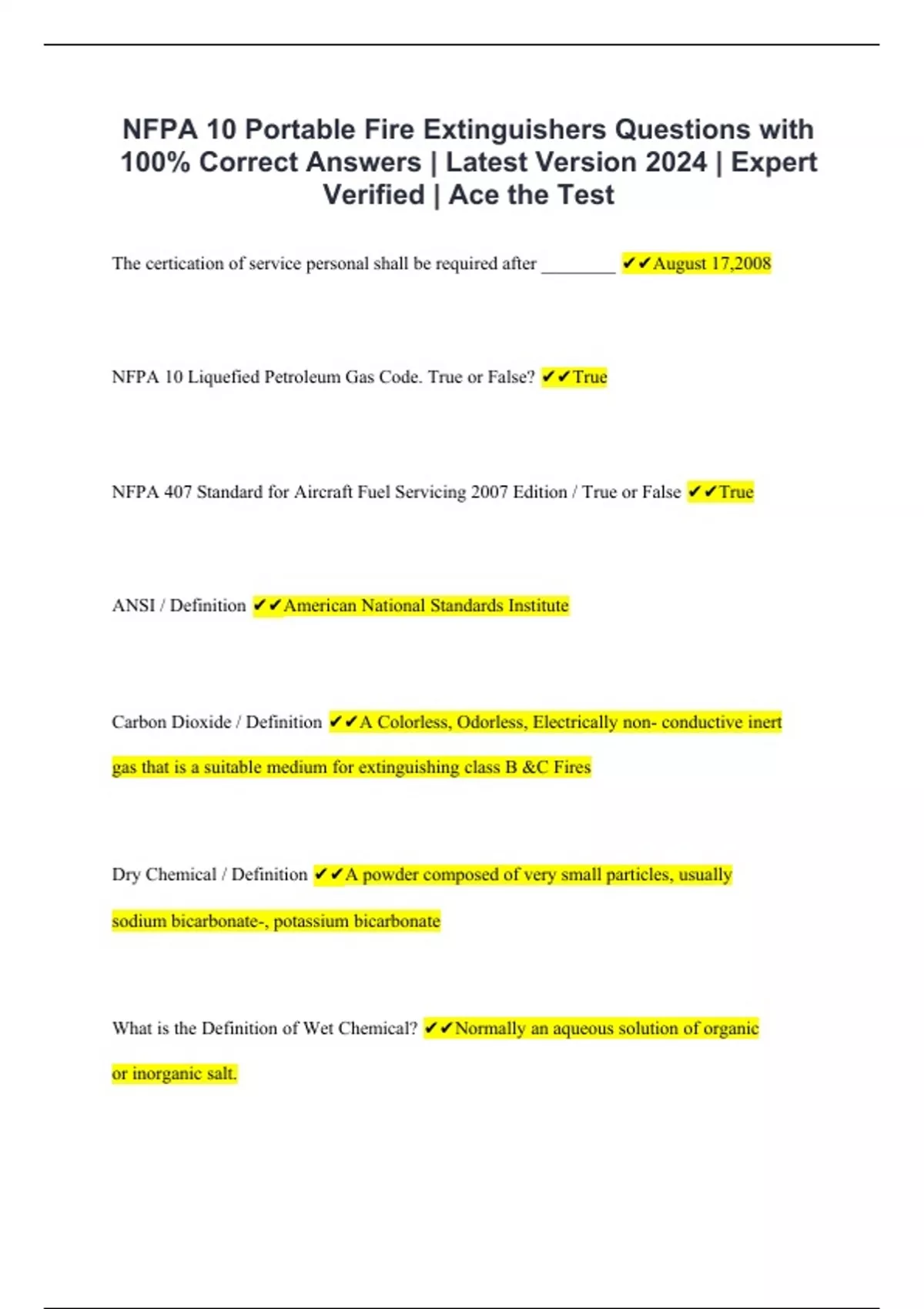 NFPA 10 Portable Fire Extinguishers Questions with 100% Correct Answers | Latest Version 2024 | Expert Verified | Ace the Test