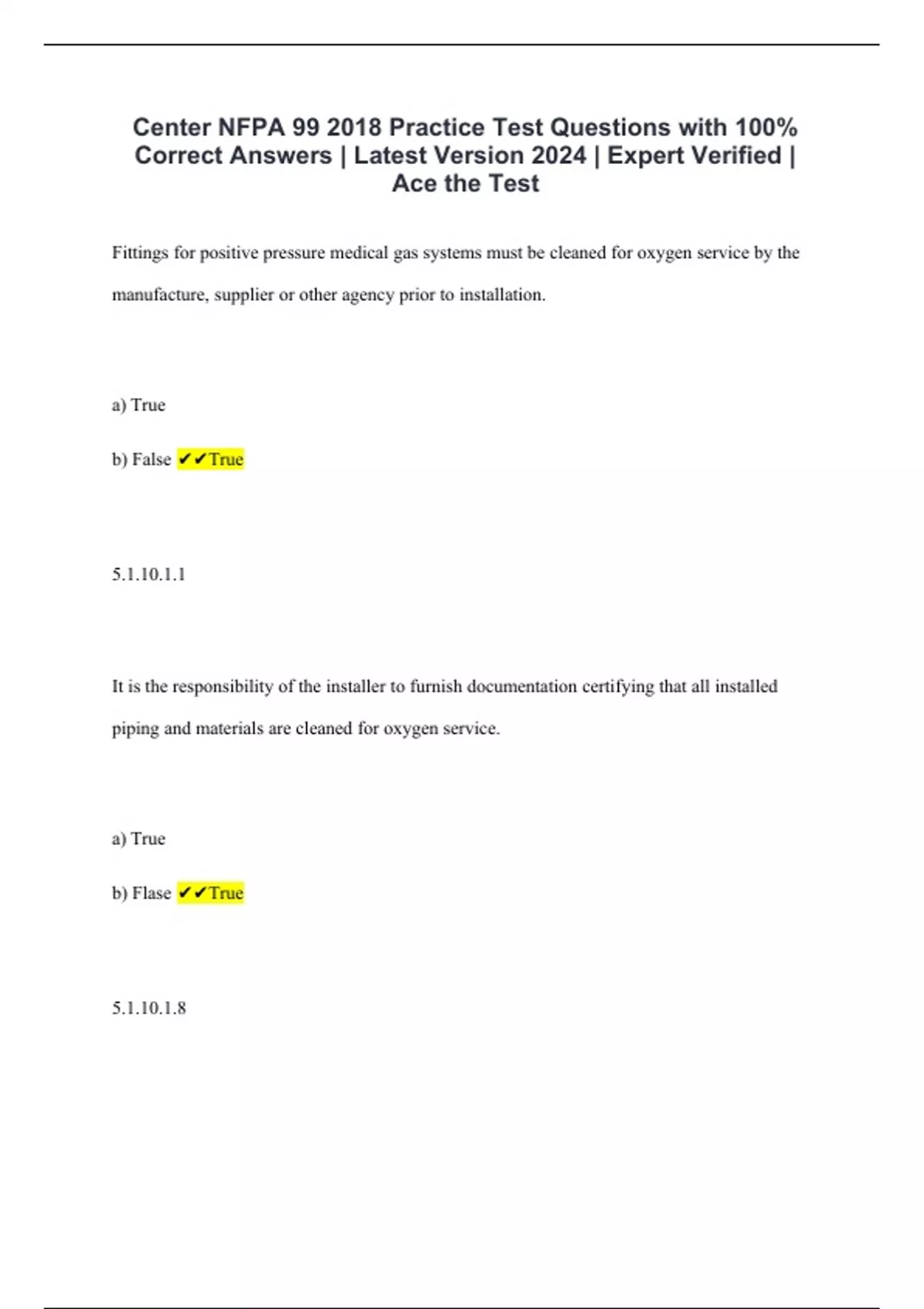 Center NFPA 99 2018 Practice Test Questions with 100% Correct Answers | Latest Version 2024 | Expert Verified | Ace the Test