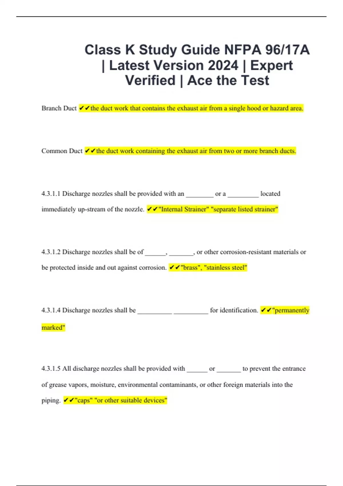 Class K Study Guide NFPA 96/17A | Latest Version 2024 | Expert Verified | Ace the Test