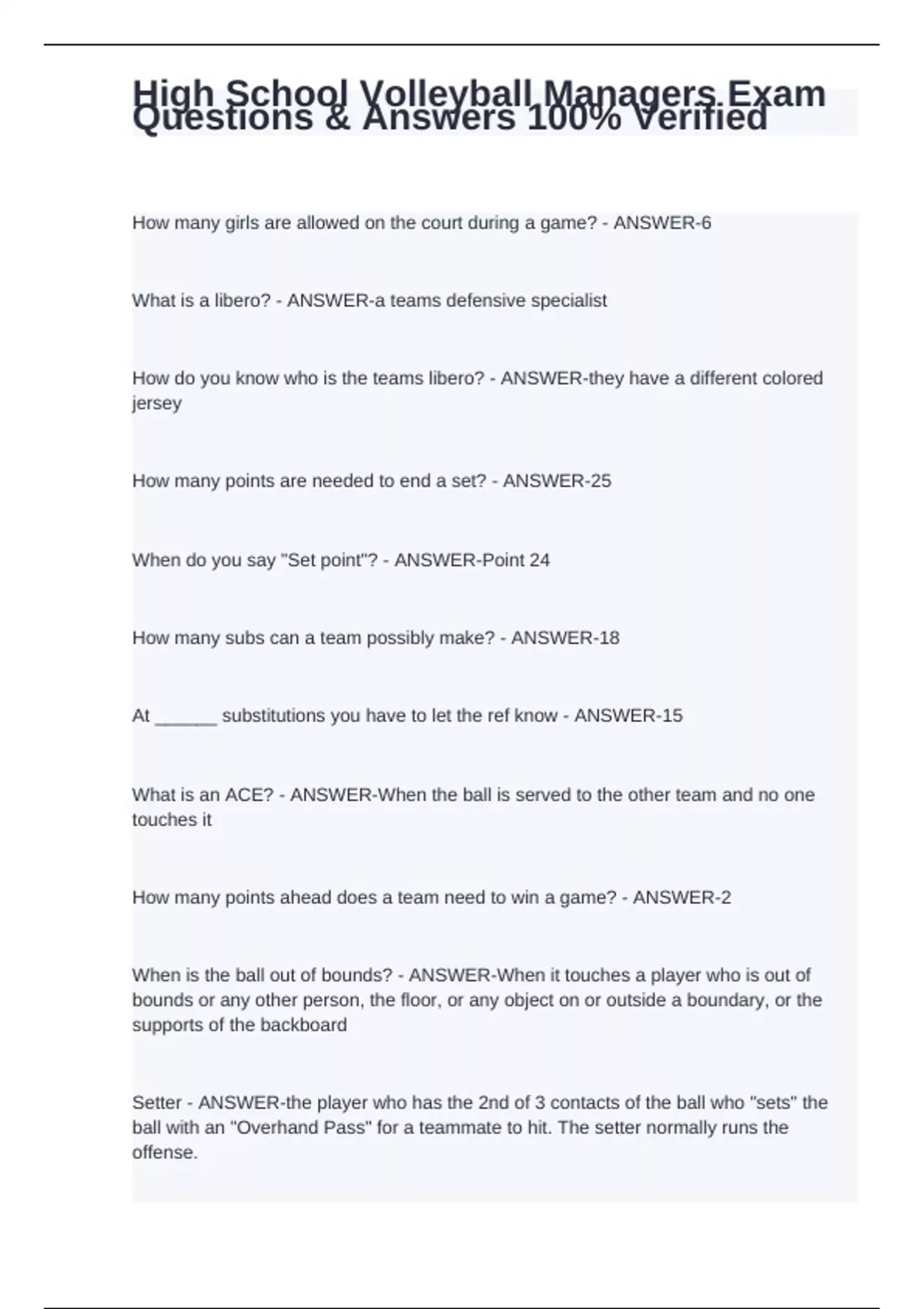 High School Volleyball Managers Exam Questions & Answers 100% Verified