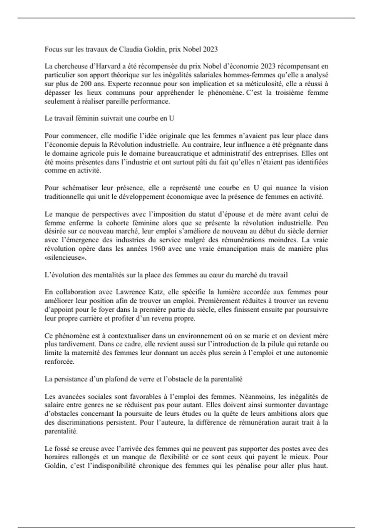 Focus sur les travaux de Claudia Goldin, prix Nobel 2023