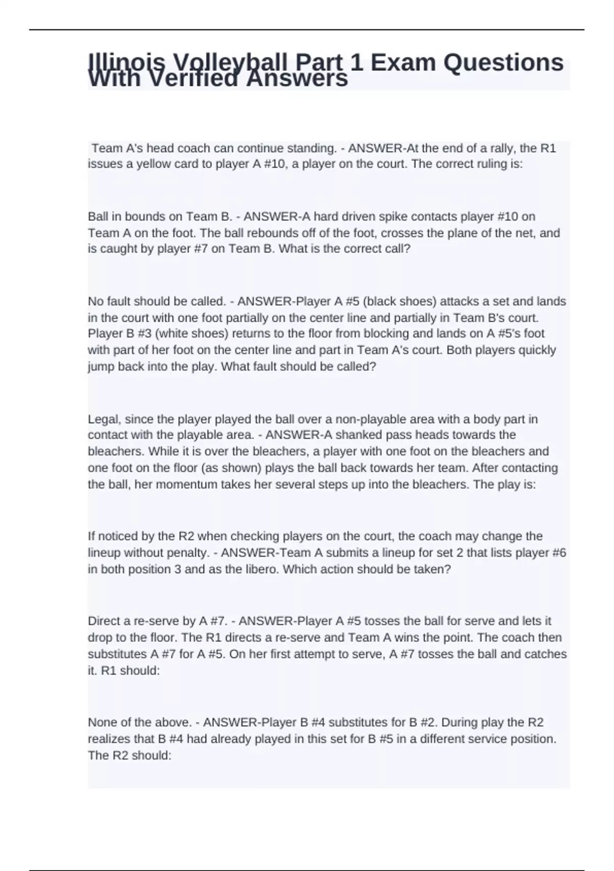 illinois volleyball part 1 exam questions with ver
