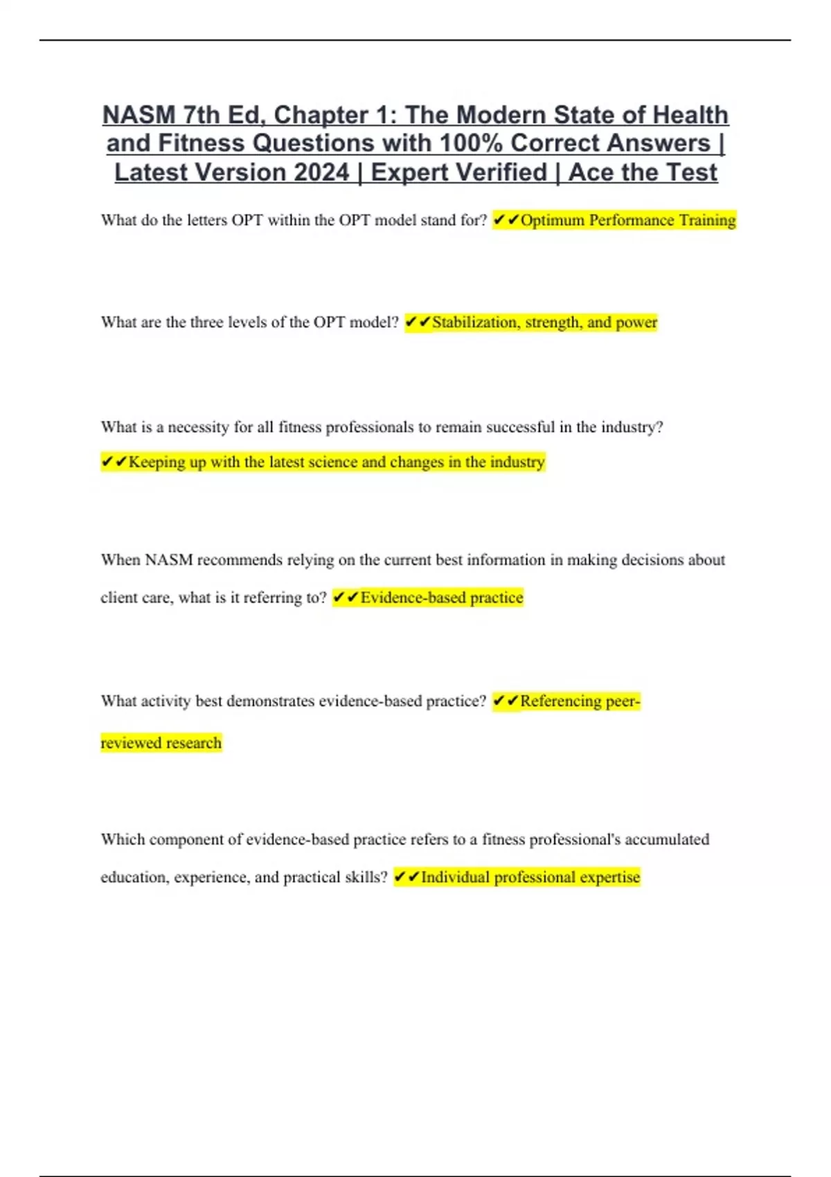 NASM 7th Ed, Chapter 1: The Modern State of Health and Fitness Questions with 100% Correct Answers | Latest Version 2024 | Expert Verified | Ace the Test