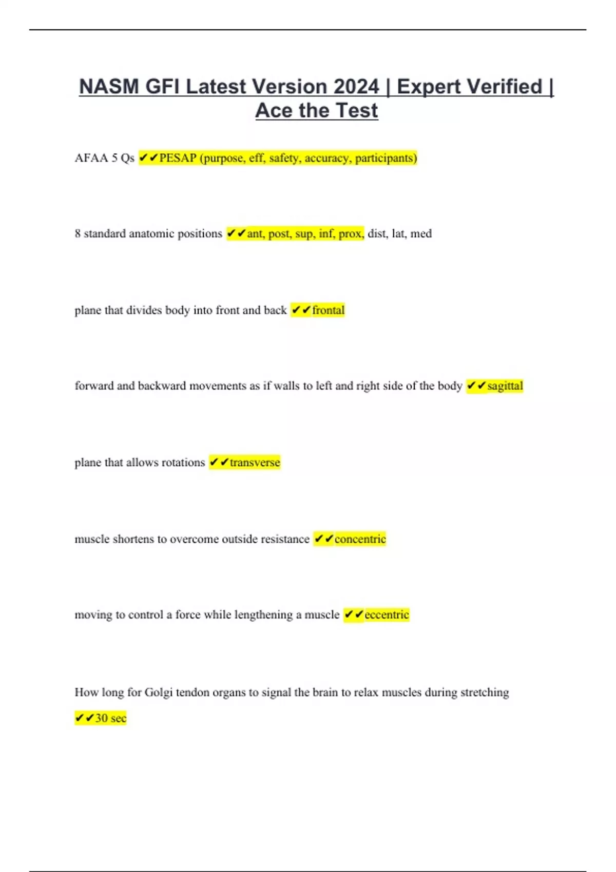 NASM GFI Latest Version 2024 | Expert Verified | Ace the Test