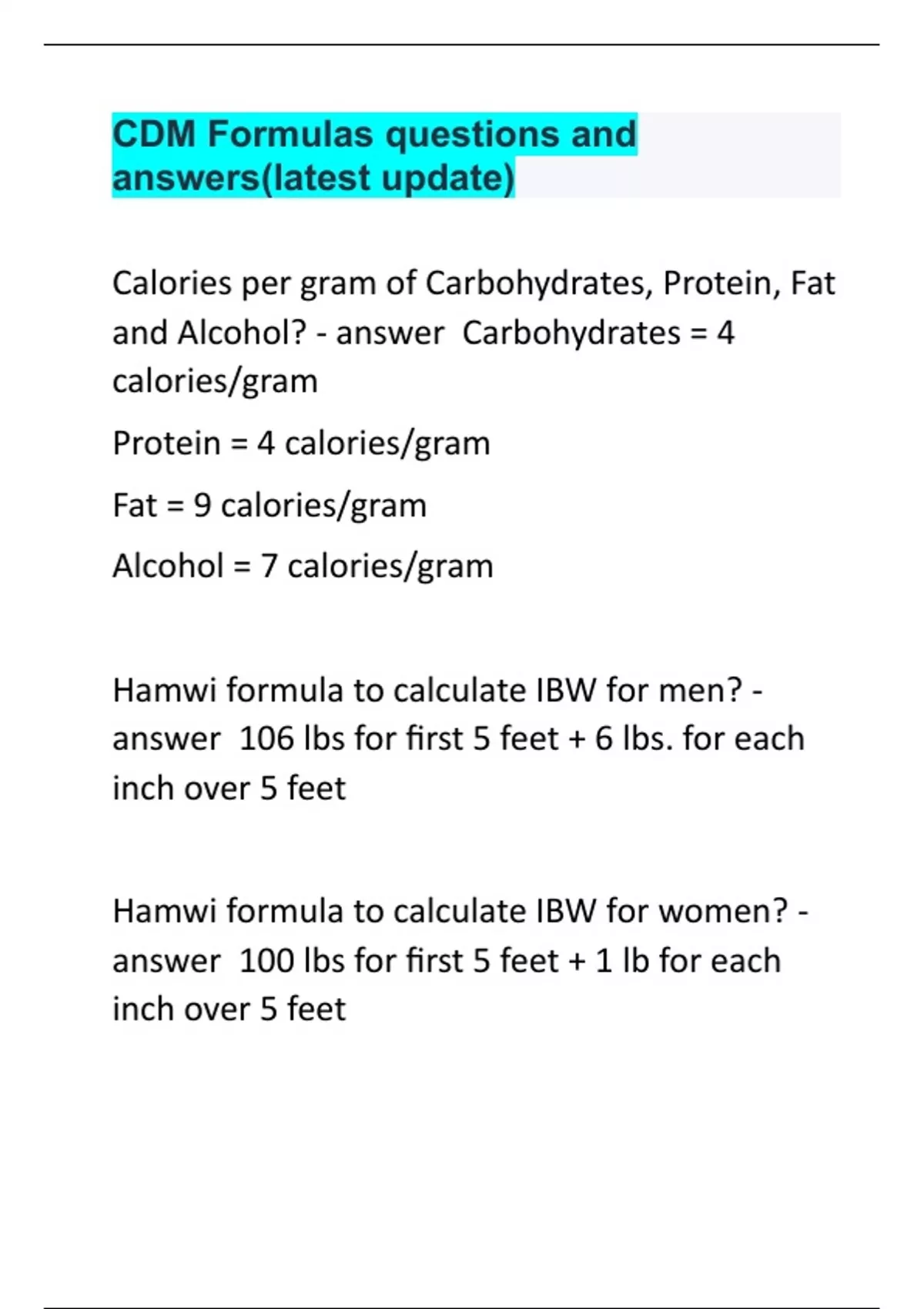 CDM Formulas questions and answers(latest update).