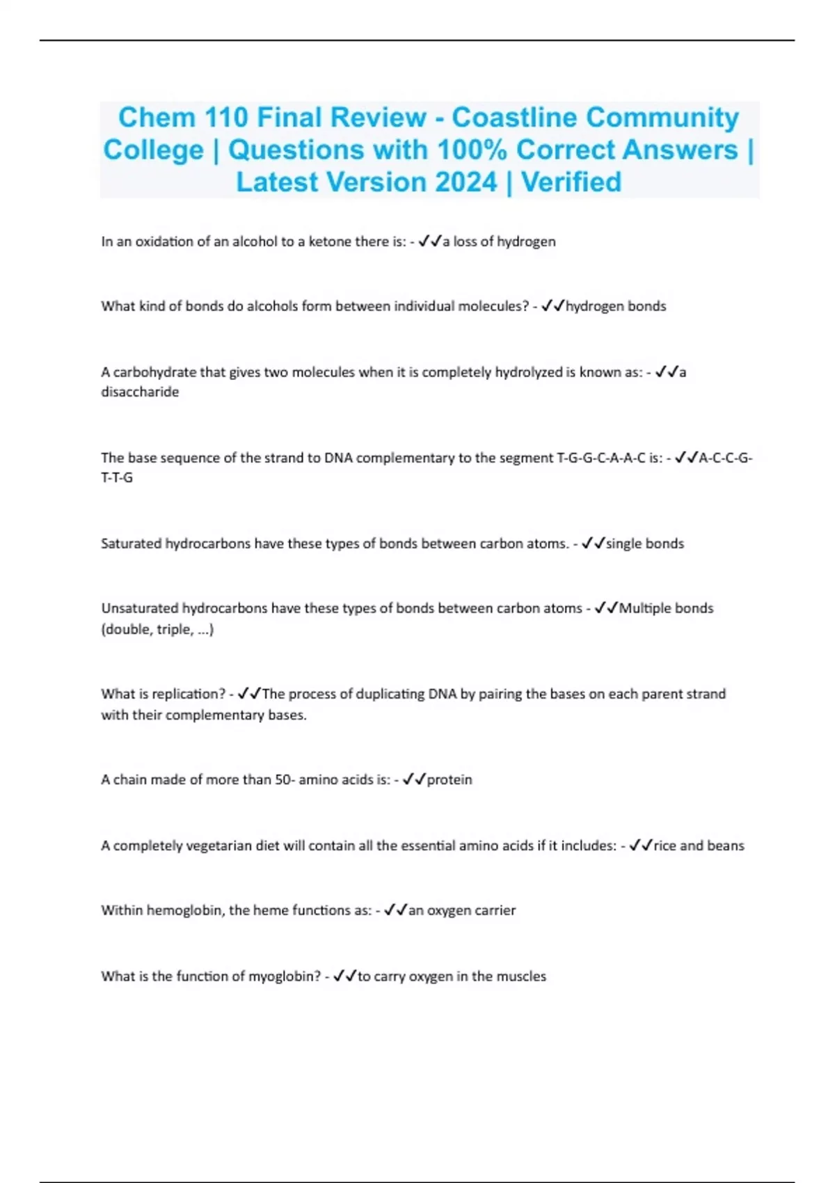Chem 110 Final Review - Coastline Community College | Questions with 100% Correct Answers | Latest Version 2024 | Verified