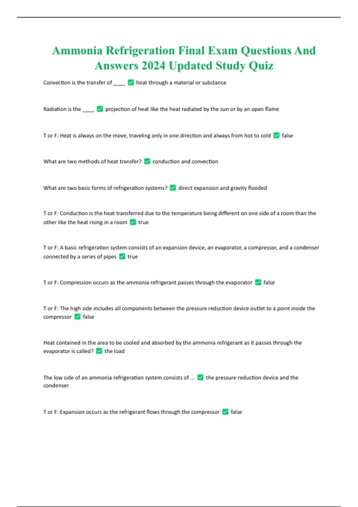 Ammonia Refrigeration Final Exam Questions And Answers 2024 Updated Study Quiz