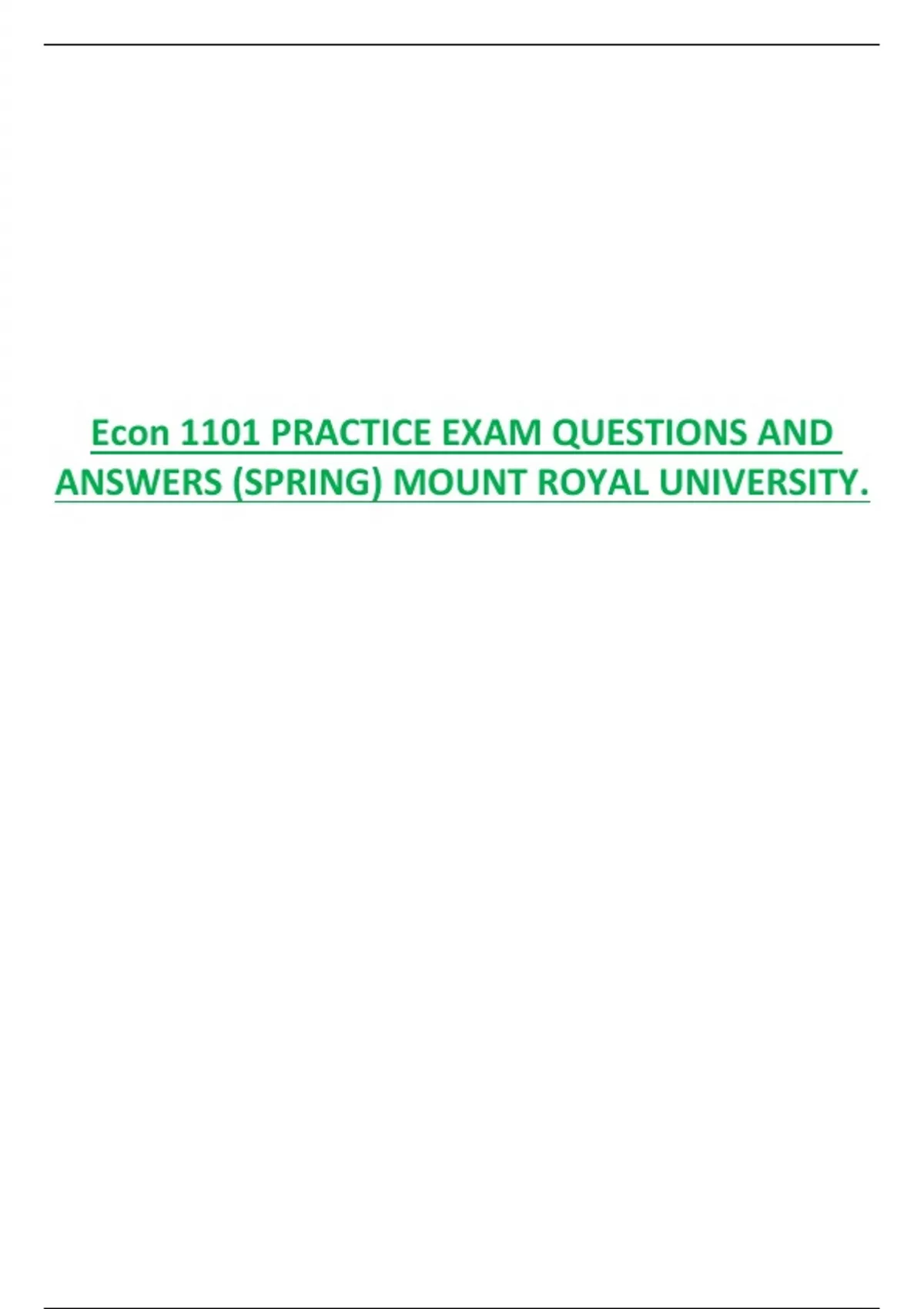Econ 1101 PRACTICE EXAM QUESTIONS AND ANSWERS (SPRING) MOUNT ROYAL UNIVERSITY.
