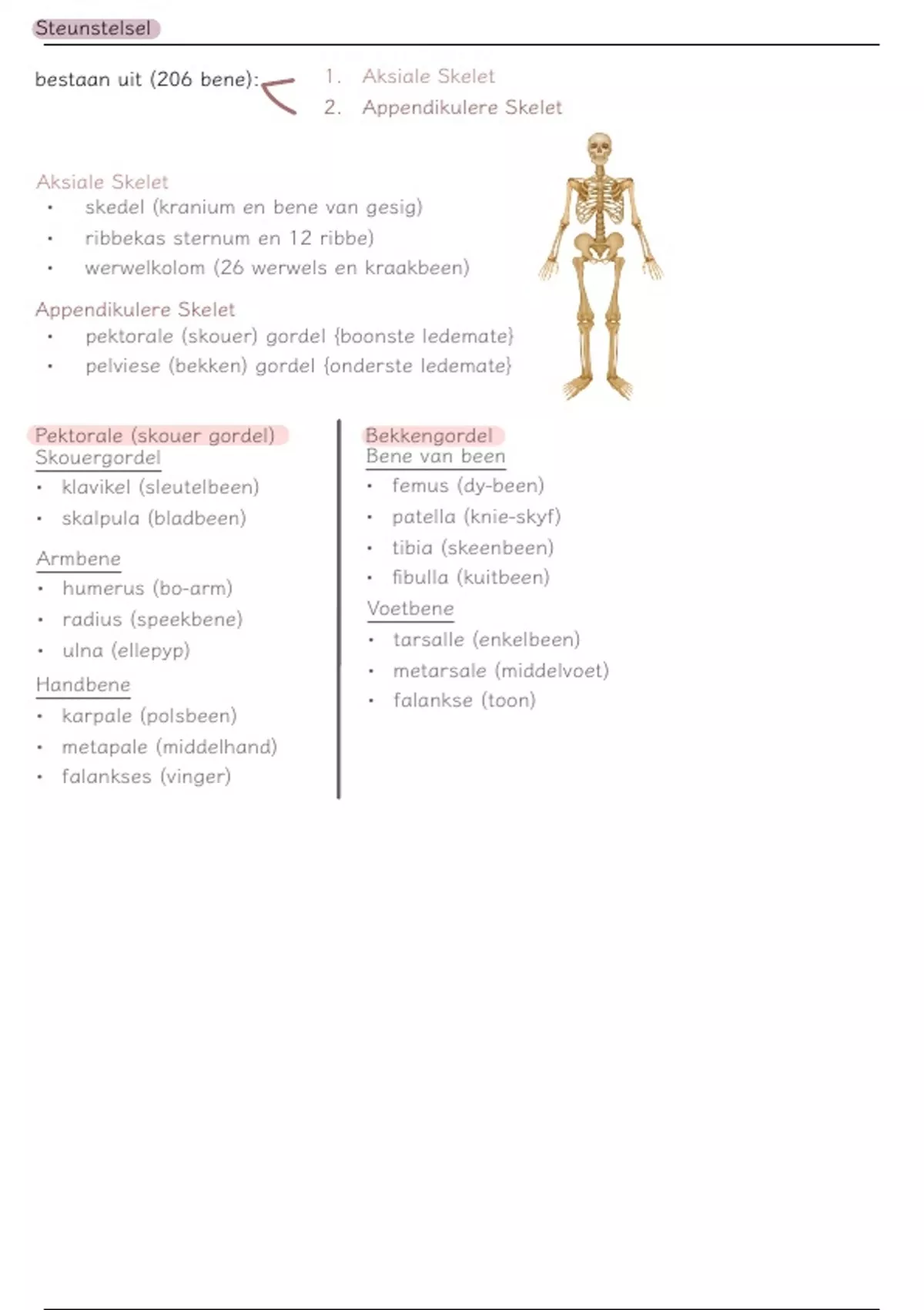 bestaan uit (206 bene): 1. Aksiale Skelet