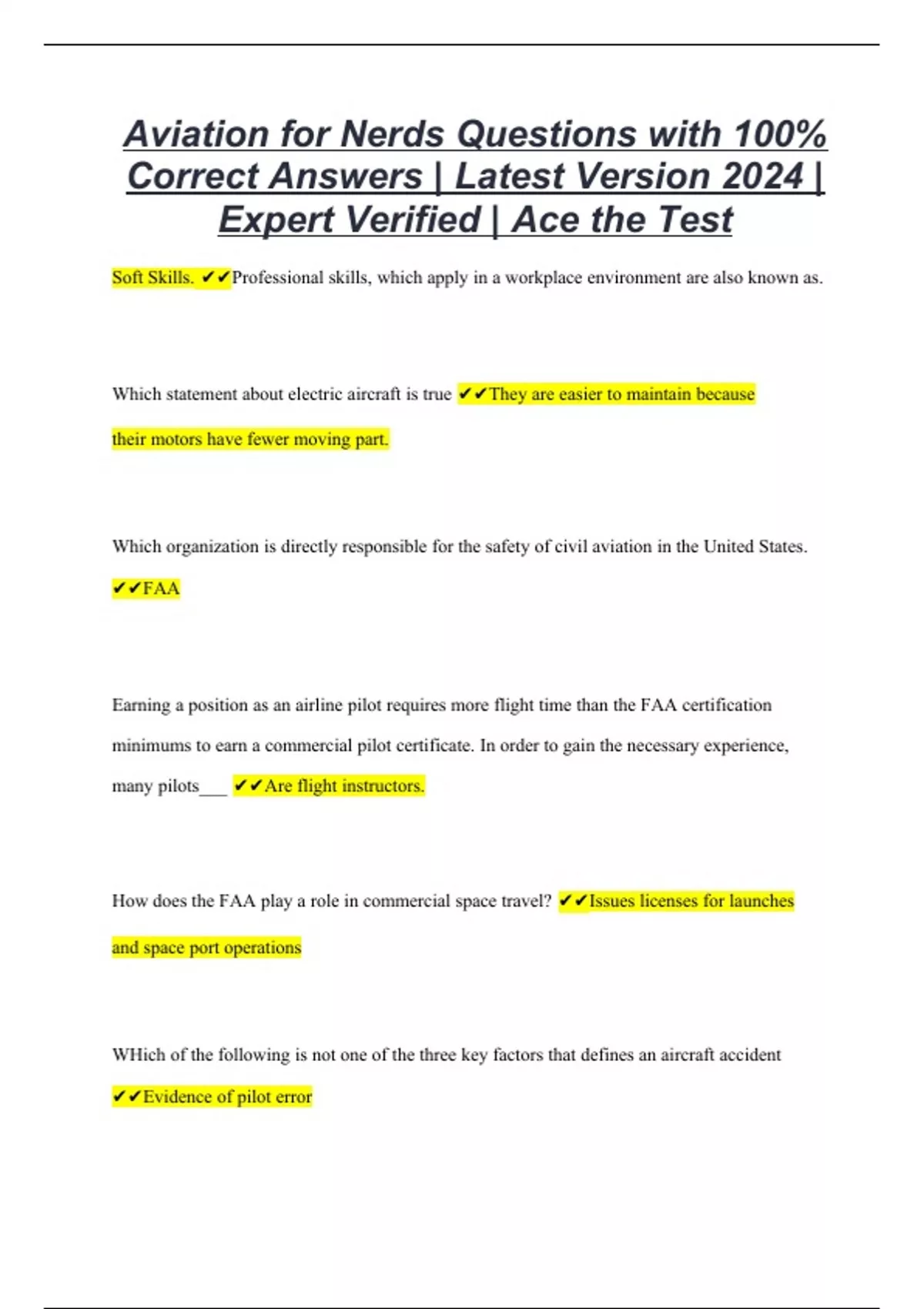 Aviation for Nerds Questions with 100% Correct Answers | Latest Version 2024 | Expert Verified | Ace the Test