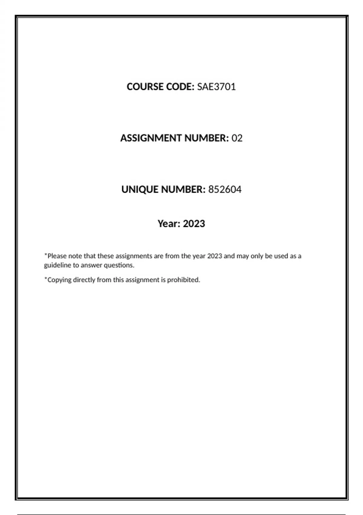 SAE3701 Assignment 2 (2023)