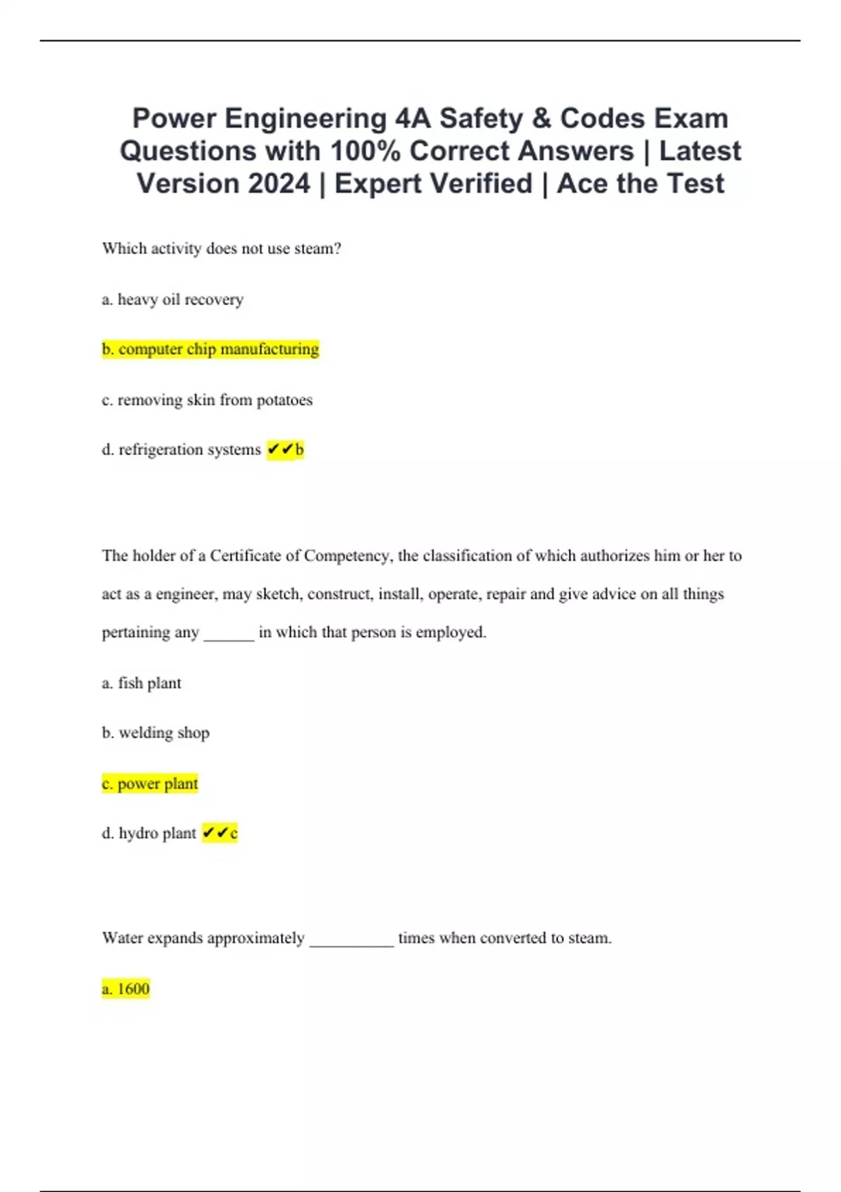 Power Engineering 4A Safety & Codes Exam Questions with 100% Correct Answers | Latest Version 2024 | Expert Verified | Ace the Test