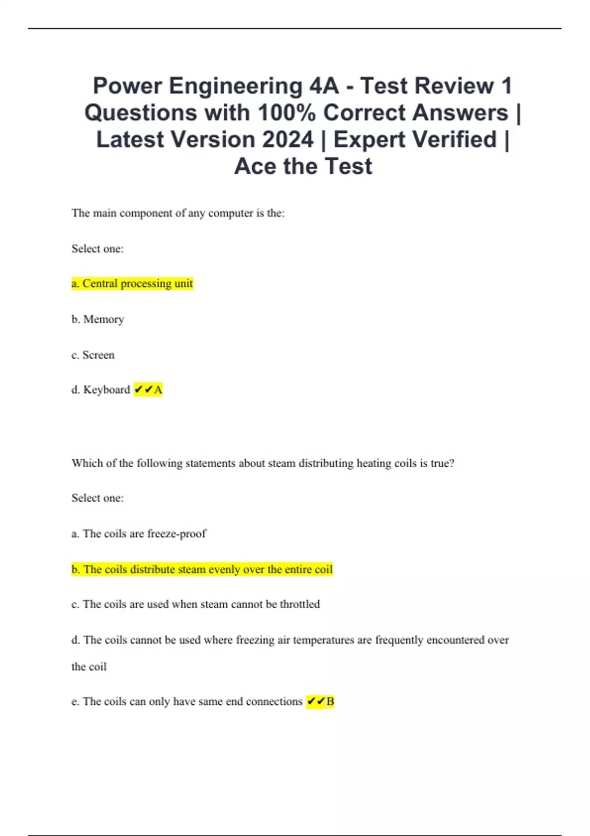 Power Engineering 4A - Test Review 1 Questions with 100% Correct Answers | Latest Version 2024 | Expert Verified | Ace the Test