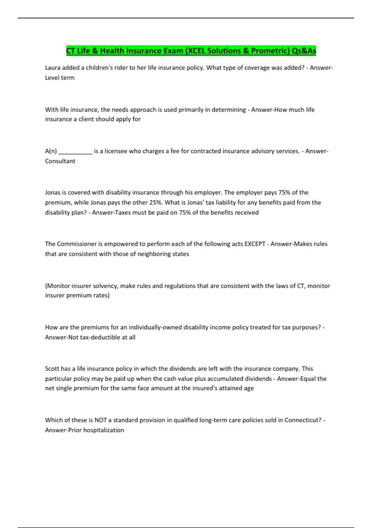 CT Life & Health Insurance Exam (XCEL Solutions & Prometric) Qs&As