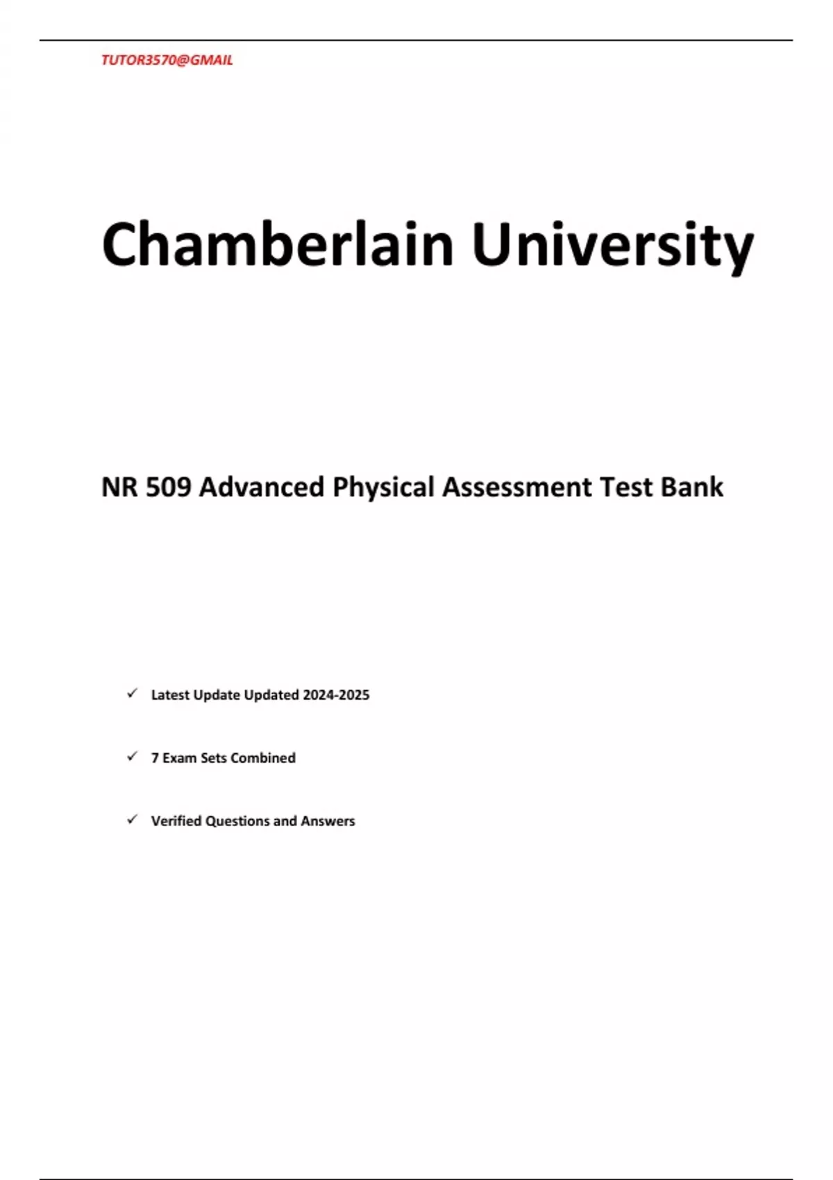 NR 509 (Advanced Physical Assessment) Midterm Exam 2024/2025 7 Exam Sets Combined