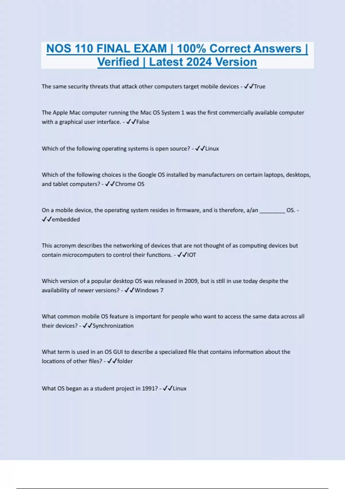 NOS 110 FINAL EXAM | 100% Correct Answers | Verified | Latest 2024 Version