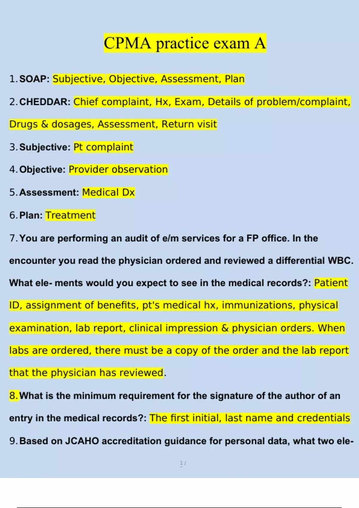 CPMA practice exam A Questions and Answers (2024 / 2025) (Verified Answers)