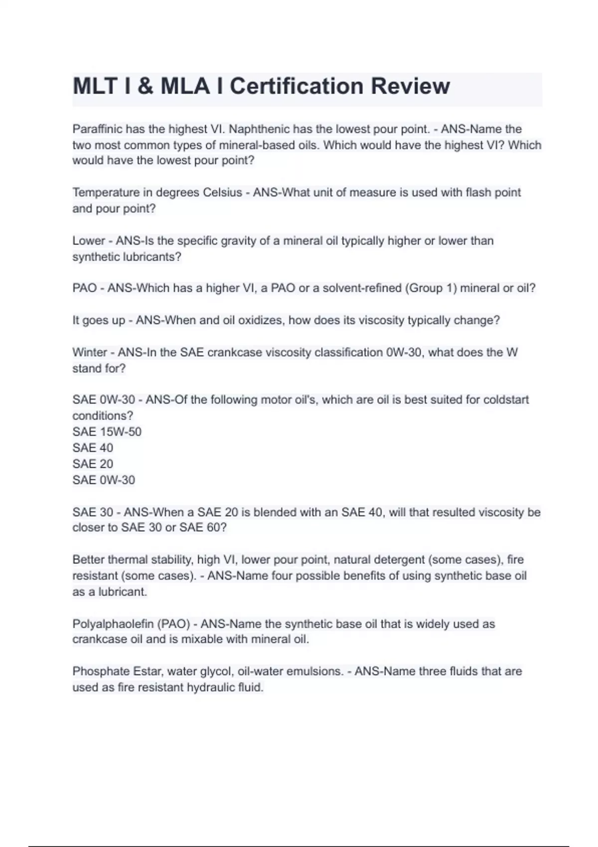 MLT I & MLA I Certification Review