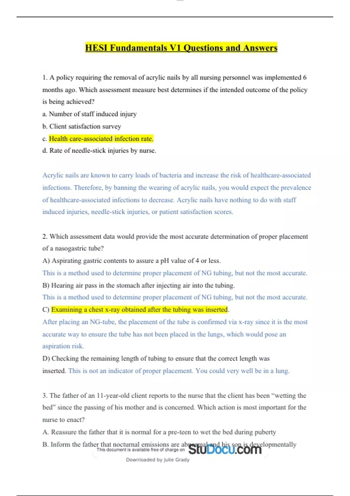 HESI Fundamentals V1 Questions and AnswersHESI Fundamentals V1 Questions and Answers