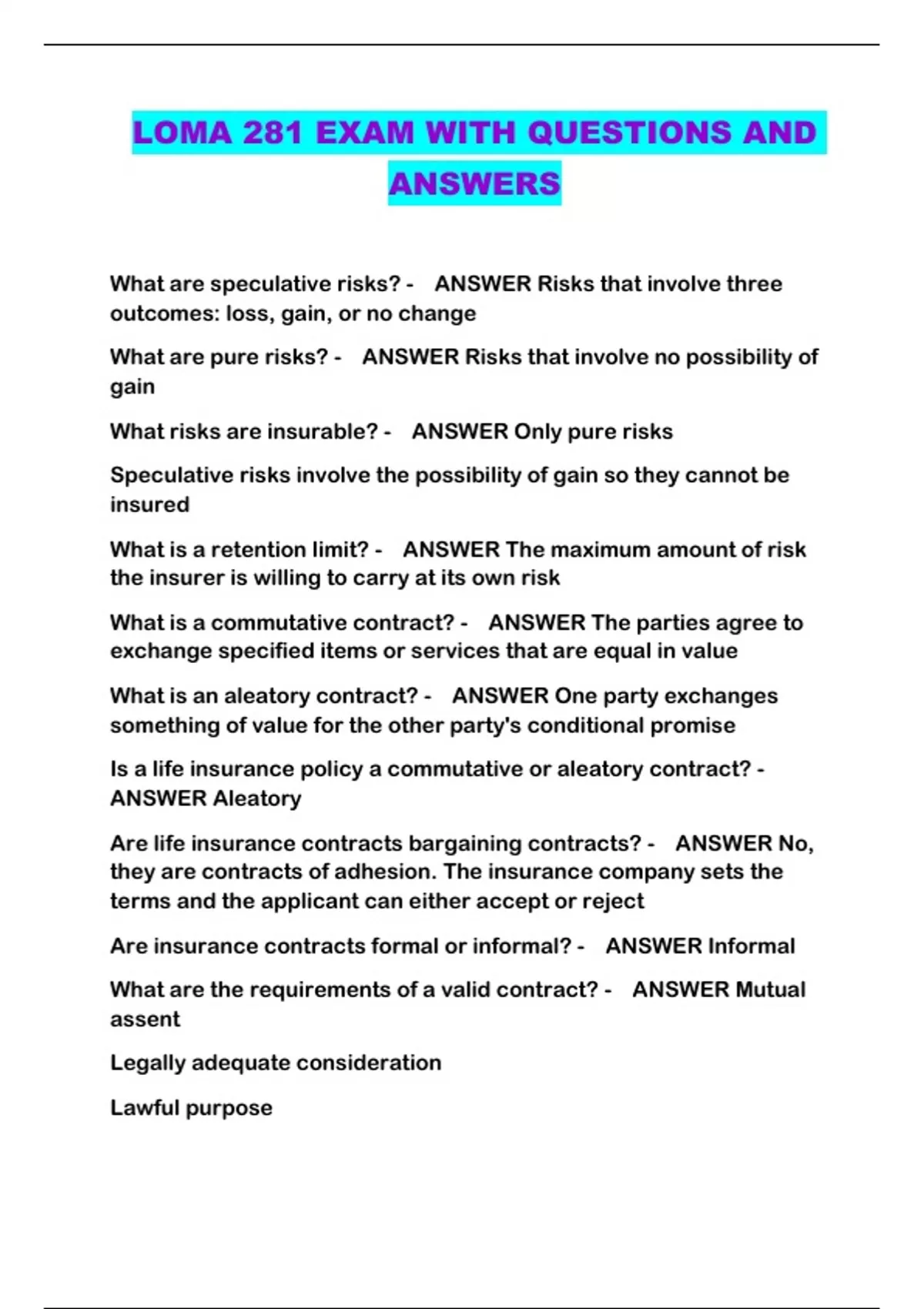 LOMA 281 EXAM WITH QUESTIONS AND ANSWERS...