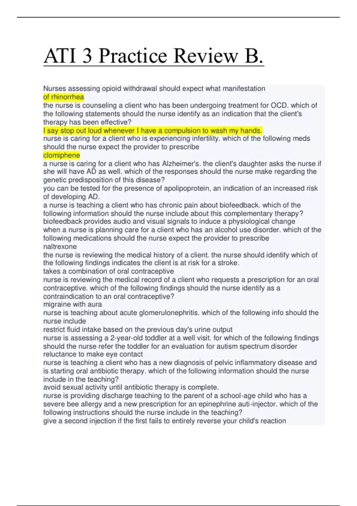 a nurse is teaching a client who has chronic pain about biofeedback. which of the following information should the nurse include about this complementary therapy? biofeedback provides audio and visual signals to induce a physiological change when a nurse is planning care for a client who has an alcohol use disorder. which of the following medications should the nurse expect the provider to prescribe naltrexone the nurse is reviewing the medical history of a client. the nurse should identify which of the following findings indicates the client is at risk for a stroke. takes a combination of oral contraceptive nurse is reviewing the medical record of a client who requests a prescription for an oral contraceptive. which of the following findings should the nurse identify as a contraindication to an oral contraceptive? migraine with aura nurse is teaching about acute glomerulonephritis. which of the following info should the nurse include restrict fluid intake based on the previous day's urine output nurse is assessing a 2-year-old toddler at a well visit. for which of the following findings should the nurse refer the toddler for an evaluation for autism spectrum disorder reluctance to make eye contact nurse is teaching a client who has a new diagnosis of pelvic inflammatory disease and is starting oral antibiotic therapy. which of the following information should the nurse include in the teaching? avoid sexual activity until antibiotic therapy is complete. nurse is providing discharge teaching to the parent of a school-age child who has a severe bee allergy and a new prescription for an epinephrine auti-injector. which of the following instructions should the nurse include in the teaching? give a second injection if the first fails to entirely reverse your child's reaction