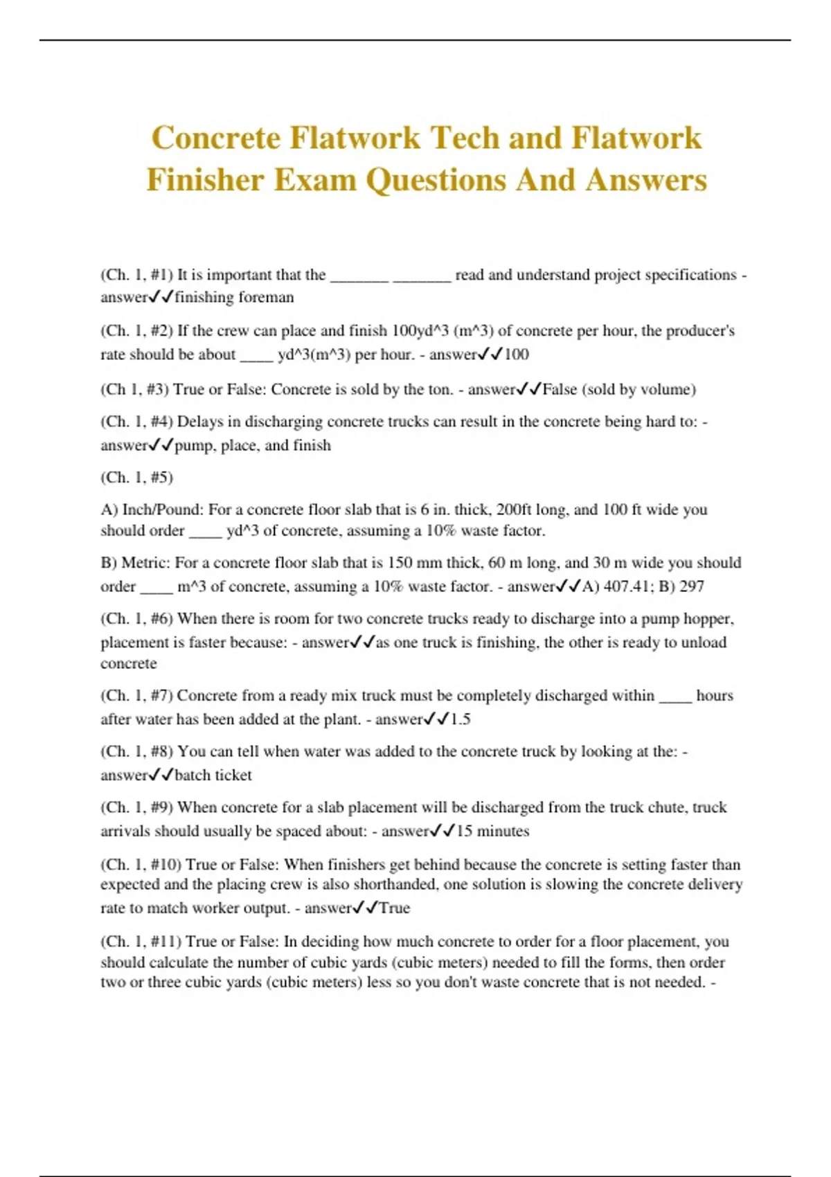 Concrete Flatwork Tech and Flatwork Finisher Exam Questions And Answers