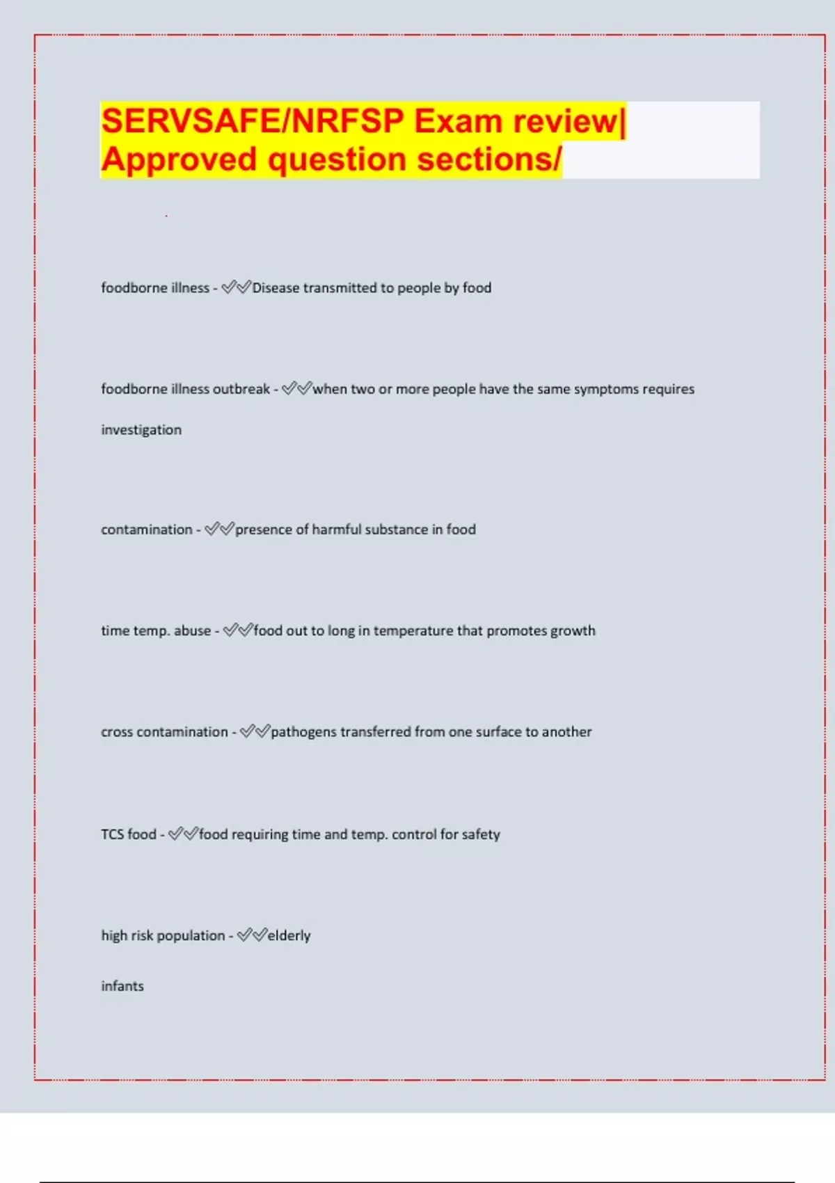 SERVSAFE/NRFSP Exam review| Approved question sections/| latest update 2024/25|