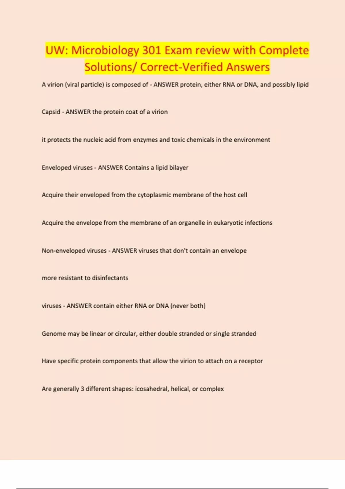 UW: Microbiology 301 Exam review with Complete Solutions/ Correct-Verified Answers