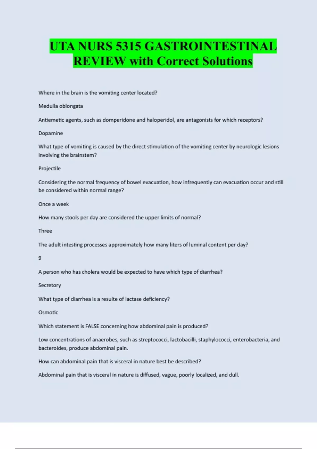 UTA NURS 5315 GASTROINTESTINAL REVIEW with Correct Solutions