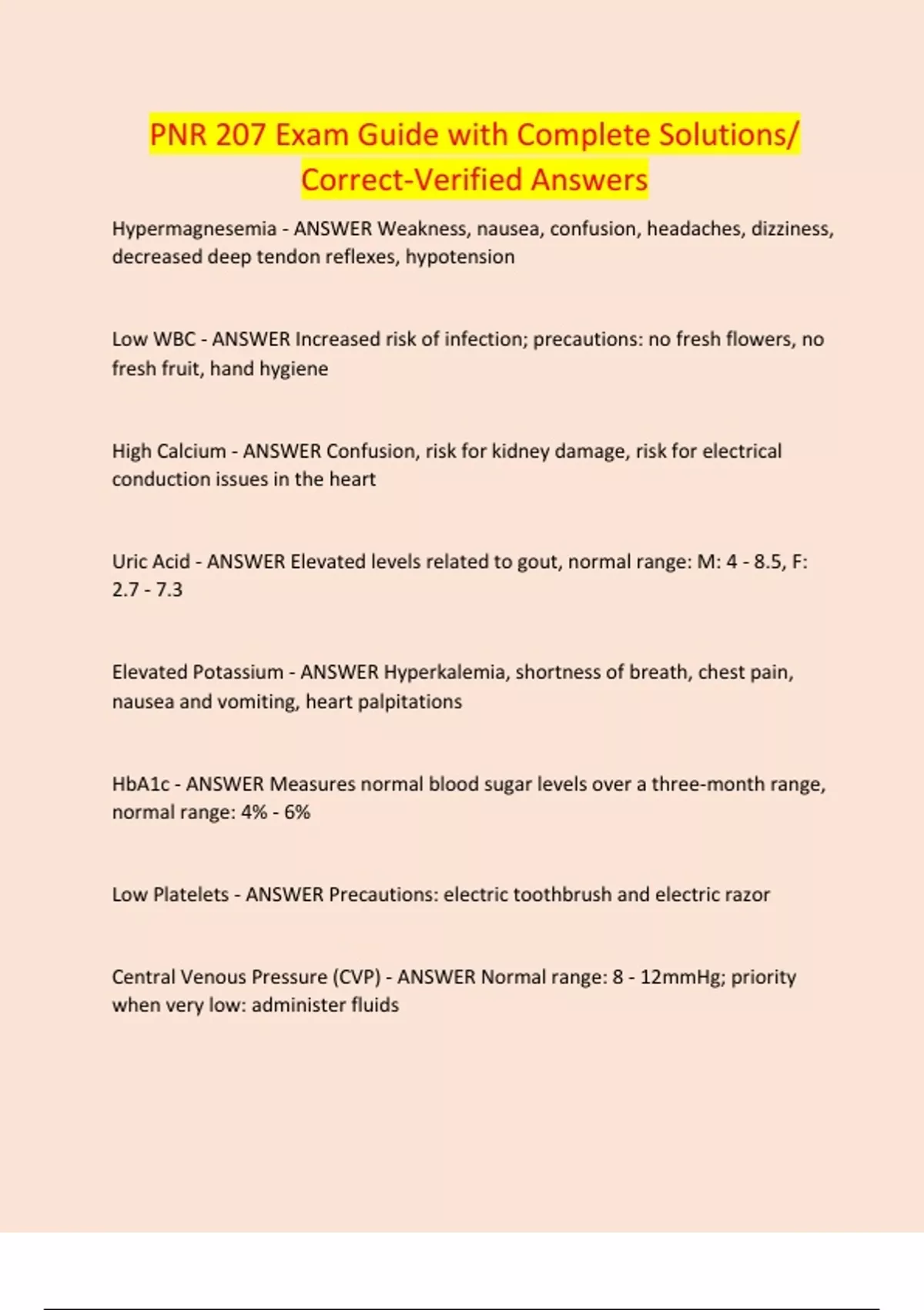 PNR 207 Exam Guide with Complete Solutions/ Correct-Verified Answers