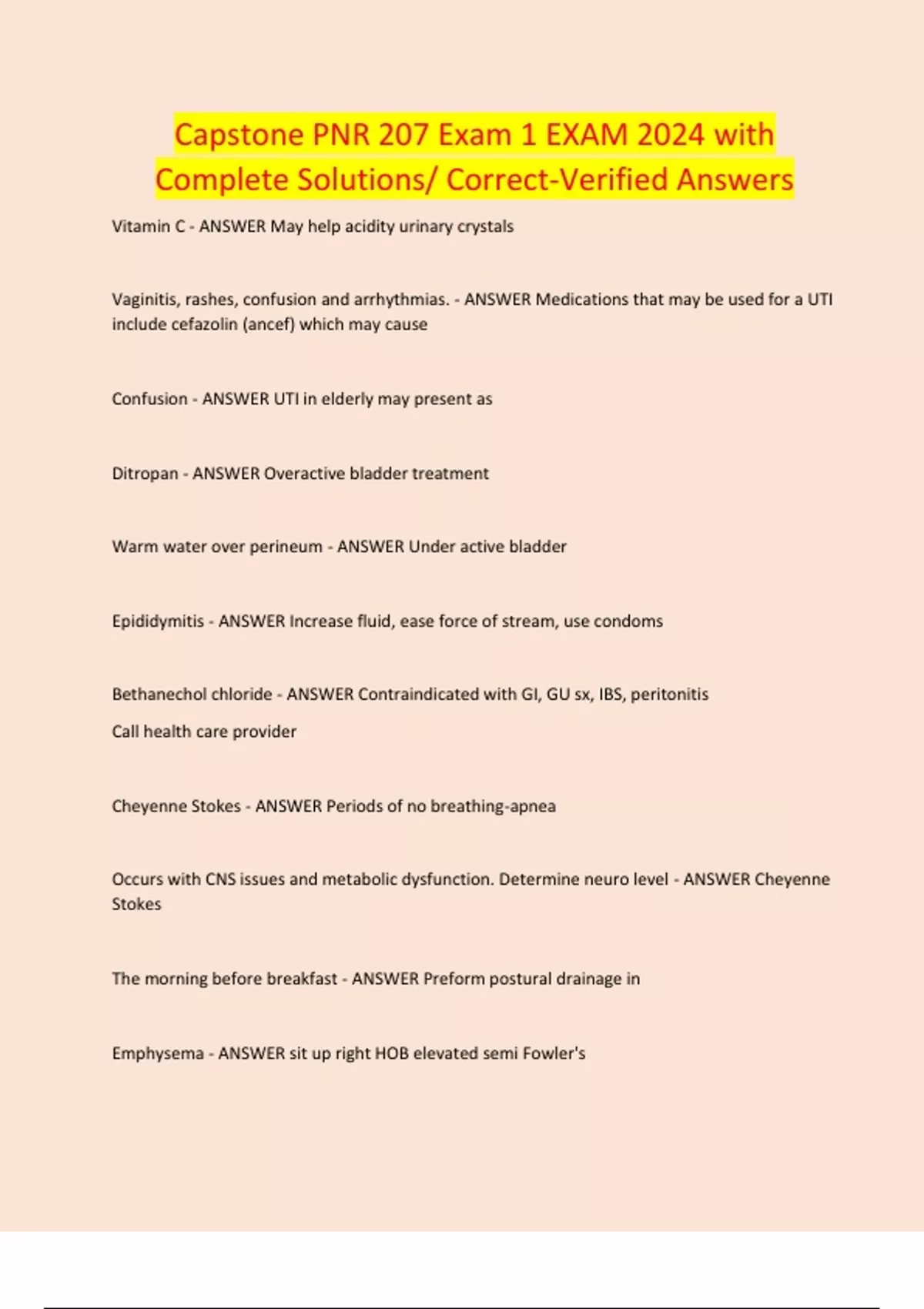 Capstone PNR 207 Exam 1 EXAM 2024 with Complete Solutions/ Correct-Verified Answers