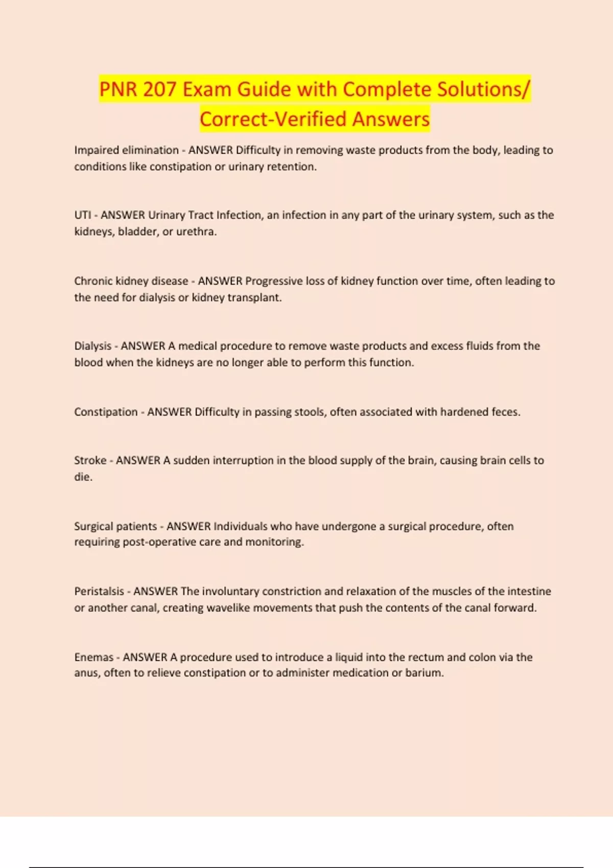 PNR 207 Exam Guide with Complete Solutions/ Correct-Verified Answers