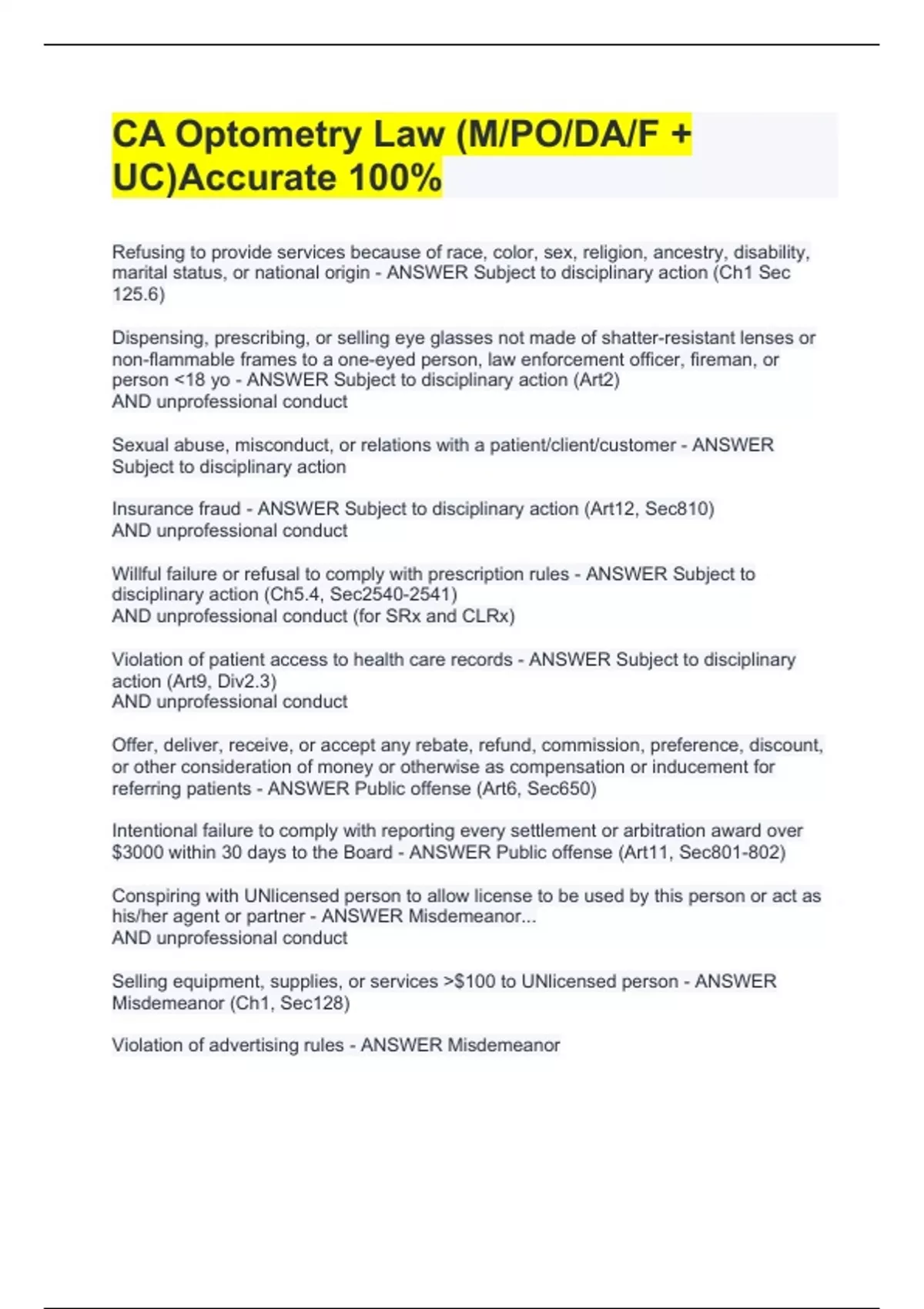 CA Optometry Law (M/PO/DA/F + UC)Accurate 100%