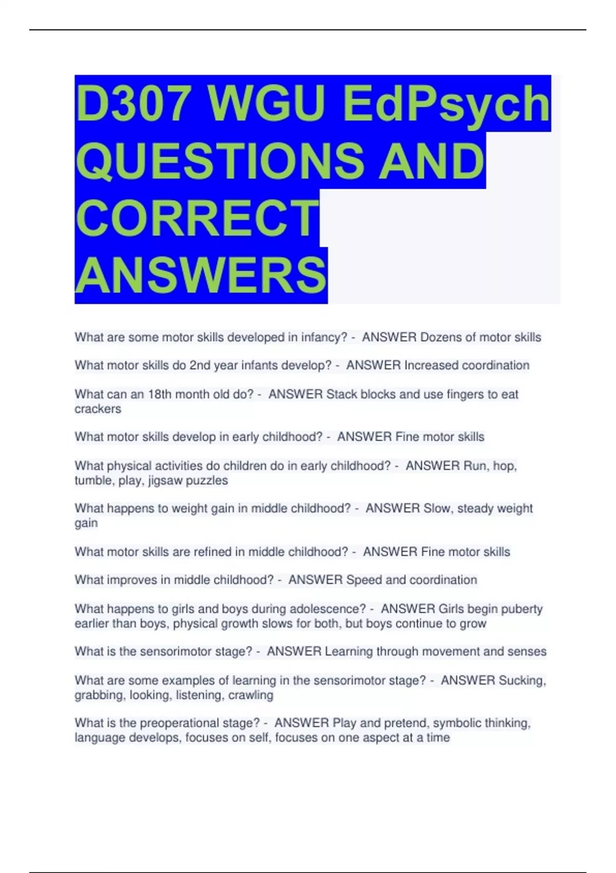 D307 - Educational Psychology WGU QUESTION AND CORRECT ANSWER LATEST UPDATE 2023