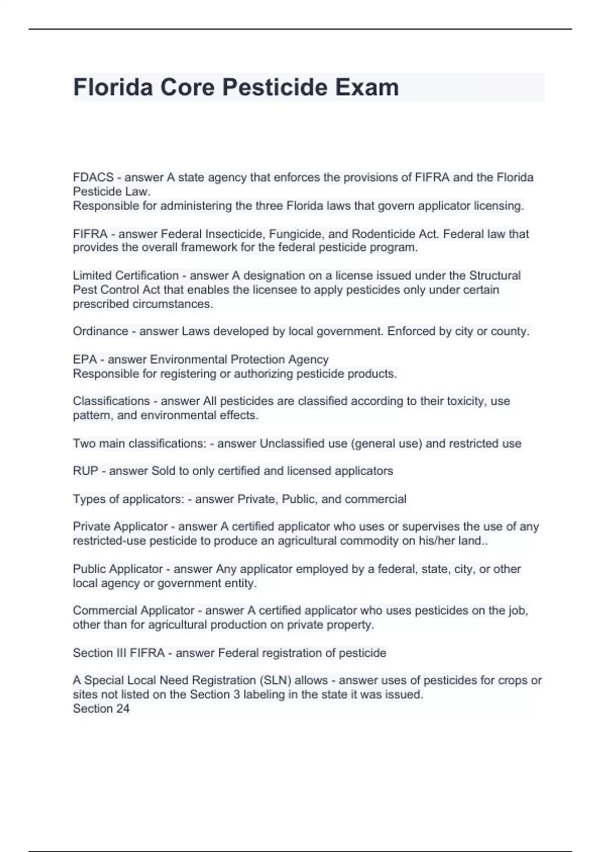 Florida Core Pesticide Exam