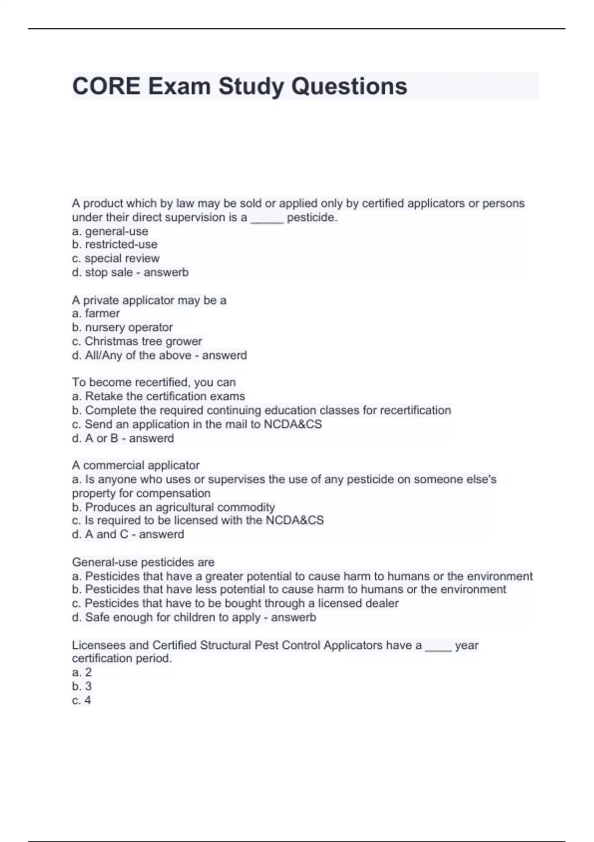 Core Pesticide Exam Bundle 2024