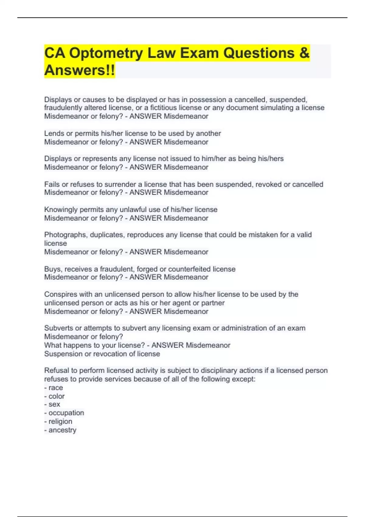 Displays or causes to be displayed or has in possession a cancelled, suspended, fraudulently altered license, or a fictitious license or any document simulating a license Misdemeanor or felony? - ANSWER Misdemeanor Lends or permits his/her license to be used by another Misdemeanor or felony? - ANSWER Misdemeanor Displays or represents any license not issued to him/her as being his/hers Misdemeanor or felony? - ANSWER Misdemeanor Fails or refuses to surrender a license that has been suspended, revoked or cancelled Misdemeanor or felony? - ANSWER Misdemeanor Knowingly permits any unlawful use of his/her license Misdemeanor or felony? - ANSWER Misdemeanor Photographs, duplicates, reproduces any license that could be mistaken for a valid license Misdemeanor or felony? - ANSWER Misdemeanor