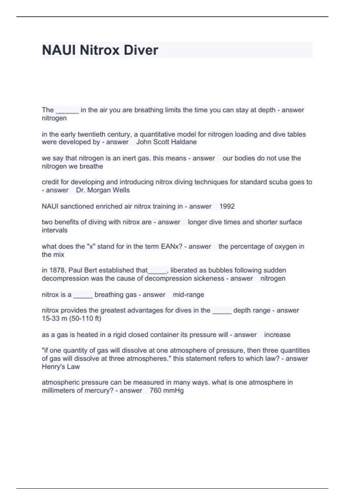 Exam of 5 pages for the course NAUI at NAUI (NAUI Nitrox Diver)