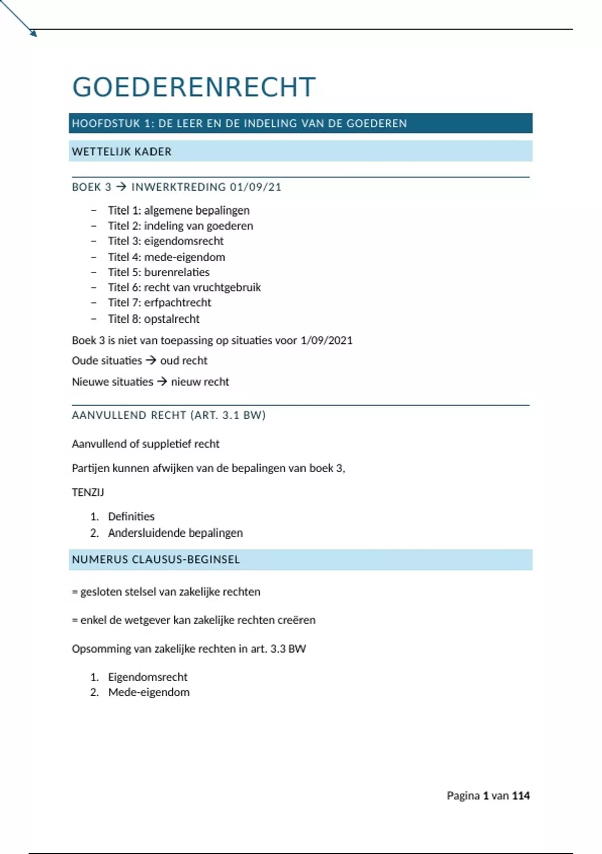 HOOFDSTUK 1: DE LEER EN DE INDELING VAN DE GOEDEREN