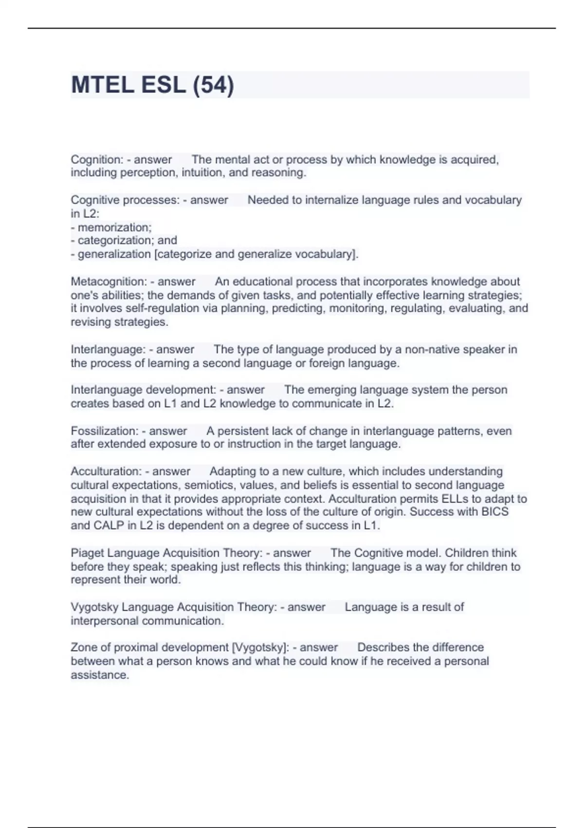 Exam of 8 pages for the course MTEL at MTEL (MTEL ESL (54))