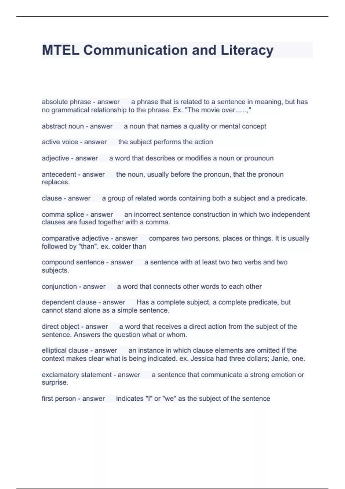 MTEL Communication and Literacy Questions and Answers 100% Solved