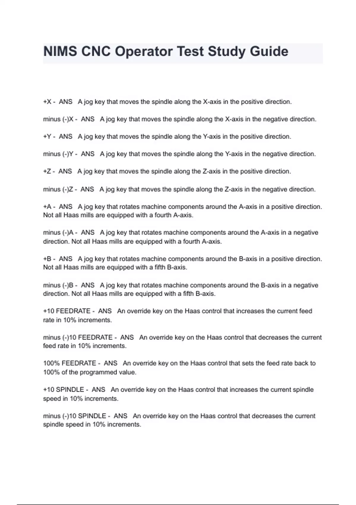 NIMS CNC Operator Test Study Guide