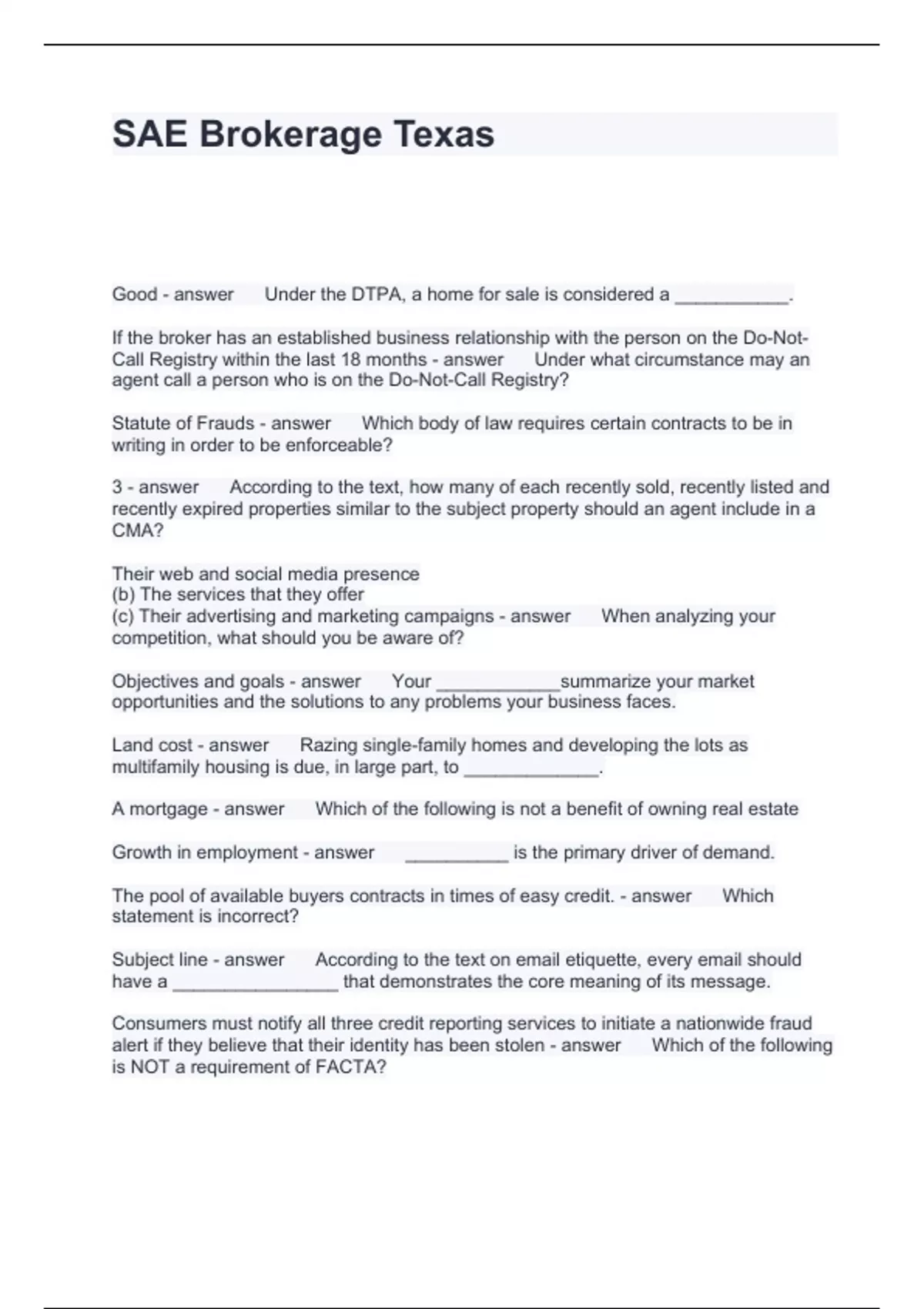 Exam of 5 pages for the course Texas Re law SAE at Texas Re law SAE (SAE Brokerage Texas)