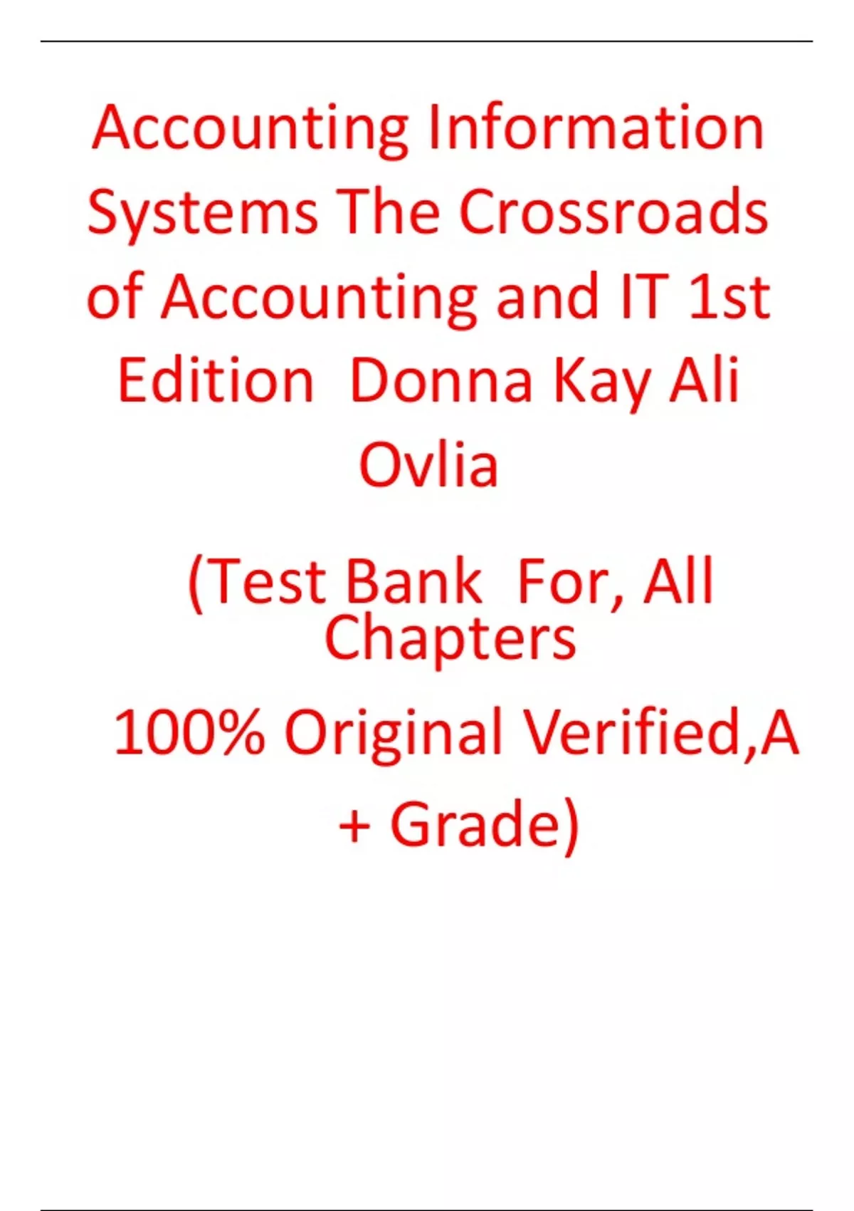 Test Bank For Accounting Information Systems The Crossroads of Accounting and IT 1Edition Donna Kay Ali Ovlia