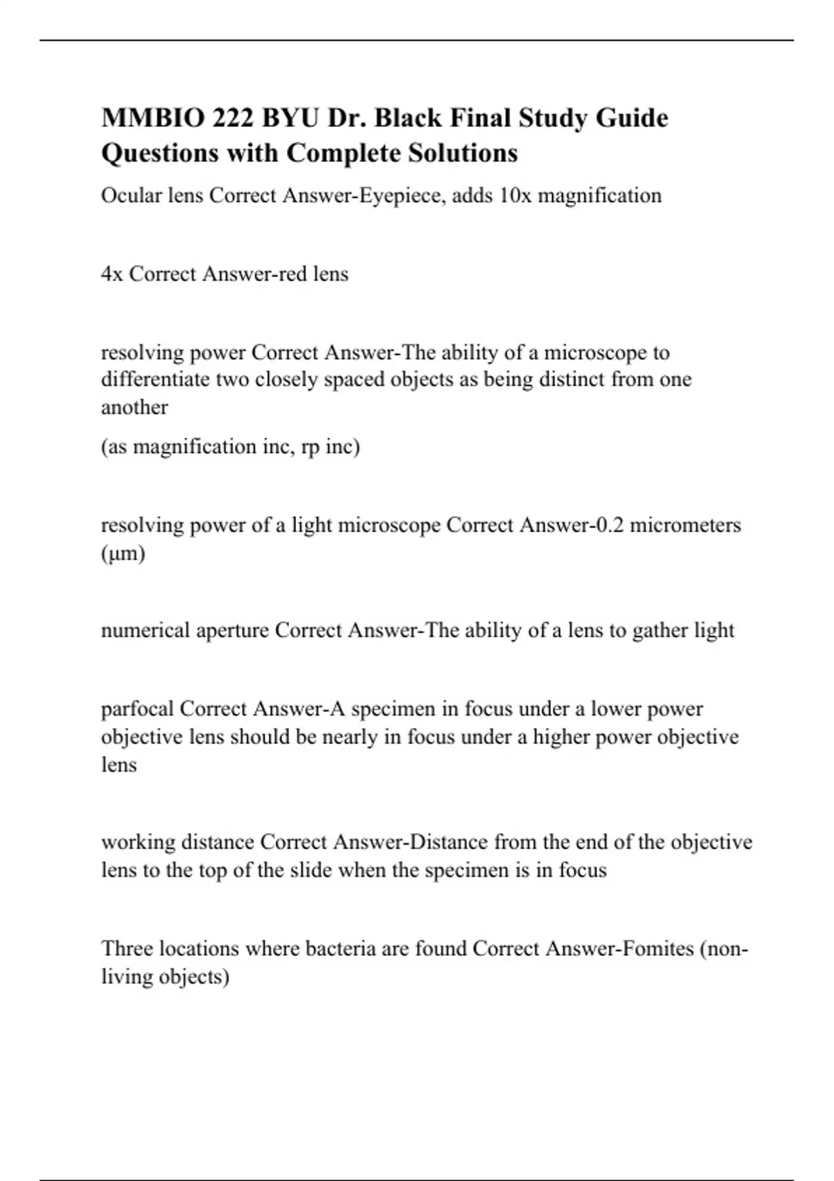 MMBIO 222 BYU Dr. Black Final Study Guide Questions with Complete Solutions