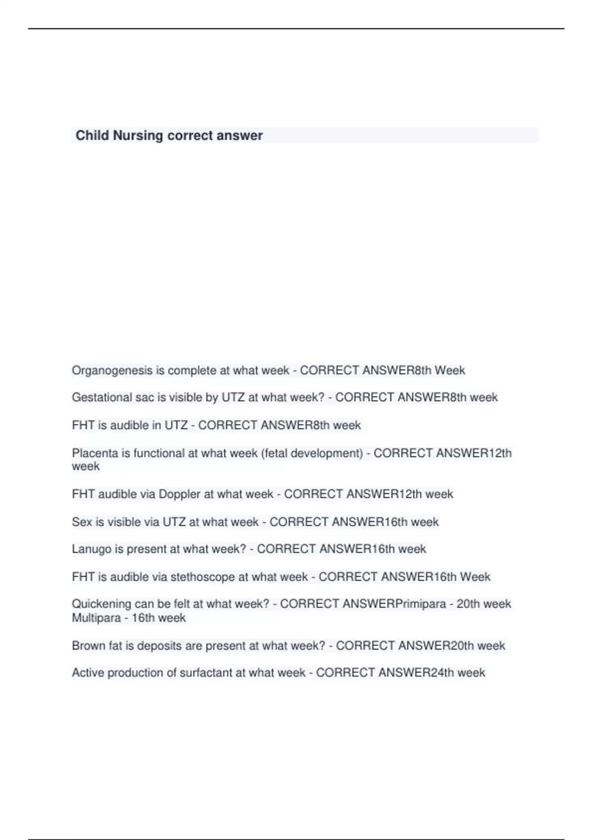 Exam of 5 pages for the course Child Nursing at Child Nursing (Child Nursing)