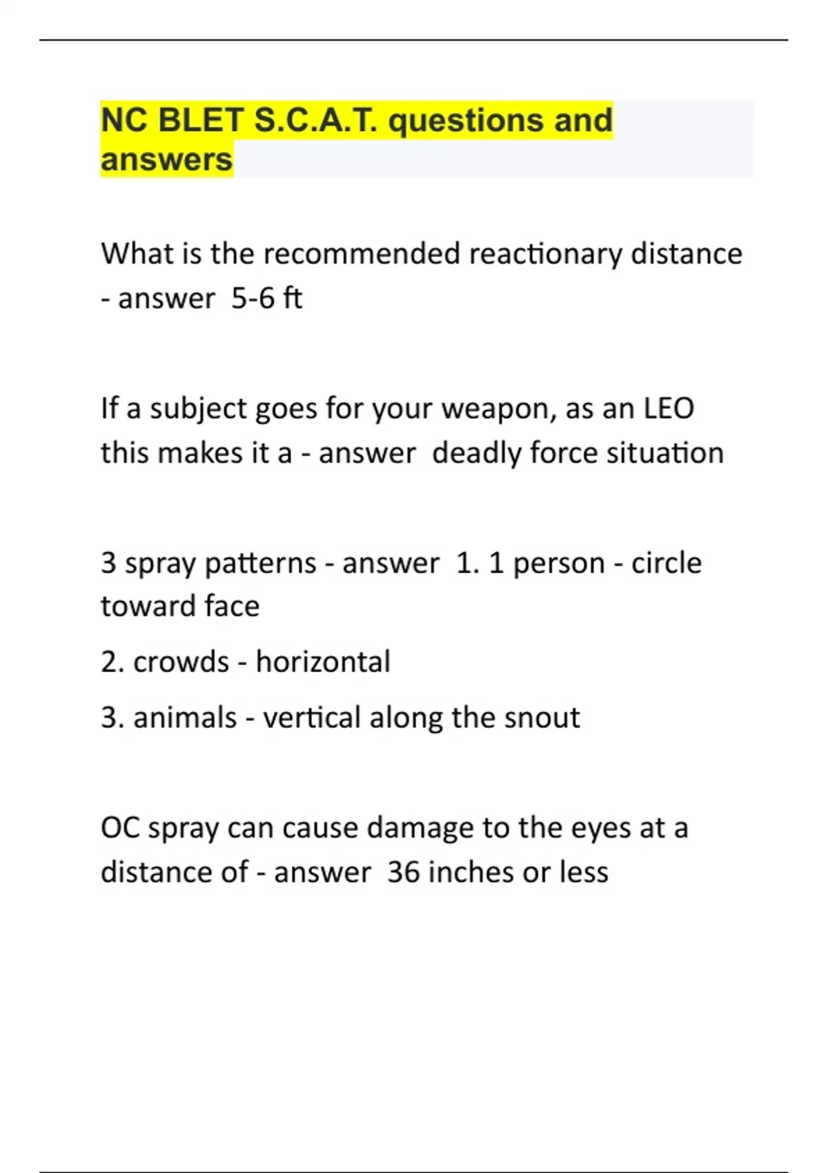 NC BLET S.C.A.T. questions and answers